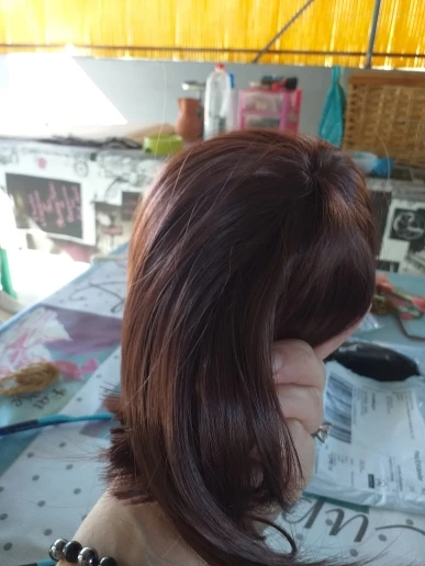 слишком много блеска . сразу видно искусственный волос. и цвет чуть чуть не совпал. но доставка очень быстрая