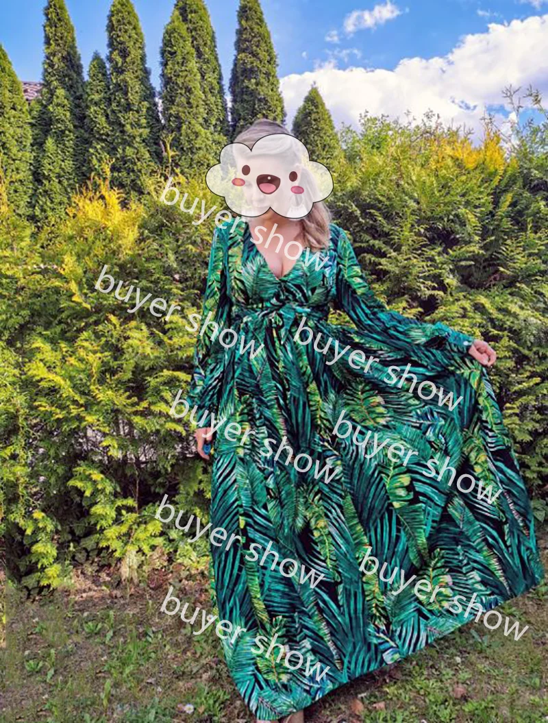 Женское пляжное платье, длинный сарафан в стиле бохо, с V-образным вырезом, лето, 2021, Платье макси с длинным рукавом