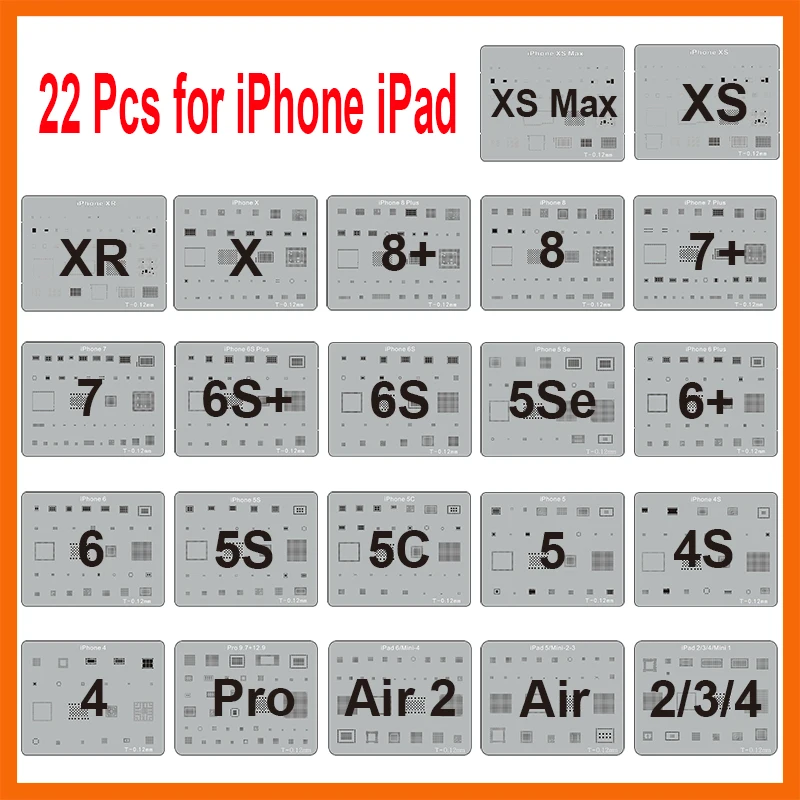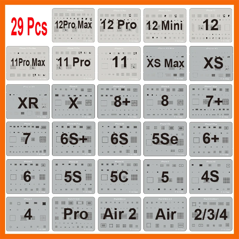 Набор трафаретов BGA для ремонта микросхем, комплект из 29 шт., шаблон для пайки для iphone 12, 11 Pro Max, XS, X, 8, 7, 6s, 6 plus, iPad, материнская плата