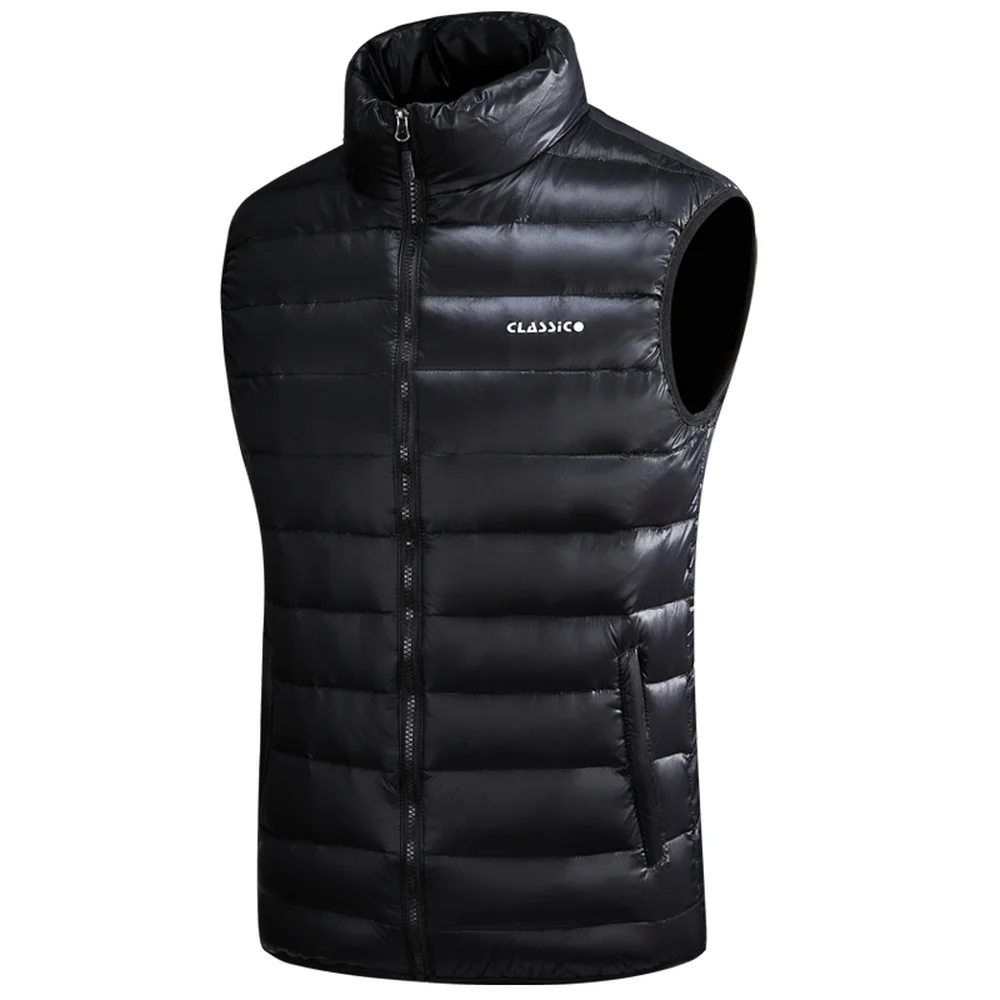 Мужской теплый пуховой жилет, Повседневная парка на белом утином пуху, куртка без рукавов, плотный Сверхлегкий жилет Varsity для осени и зимы
