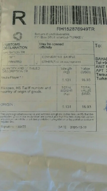 Страна: TR Доставка: Standard Shipping 06.11.2020