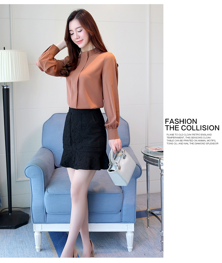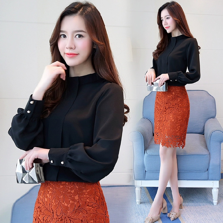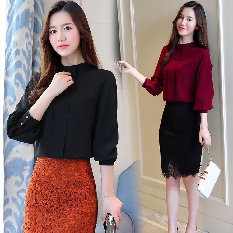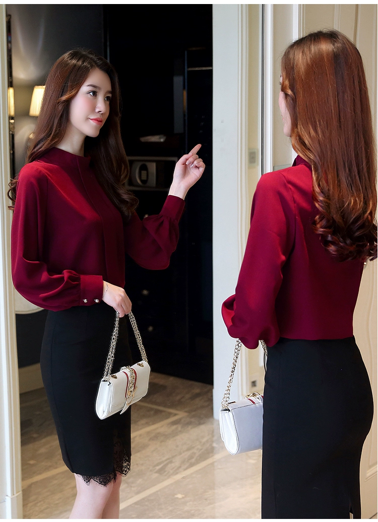 Женская шифоновая блузка, с длинным рукавом, A397