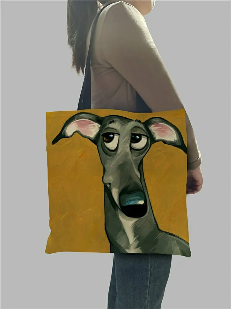 Сумка-тоут женская складная многоразовая, модная тканевая Сумочка Greyhound с принтом черной собаки, шоппер на заказ