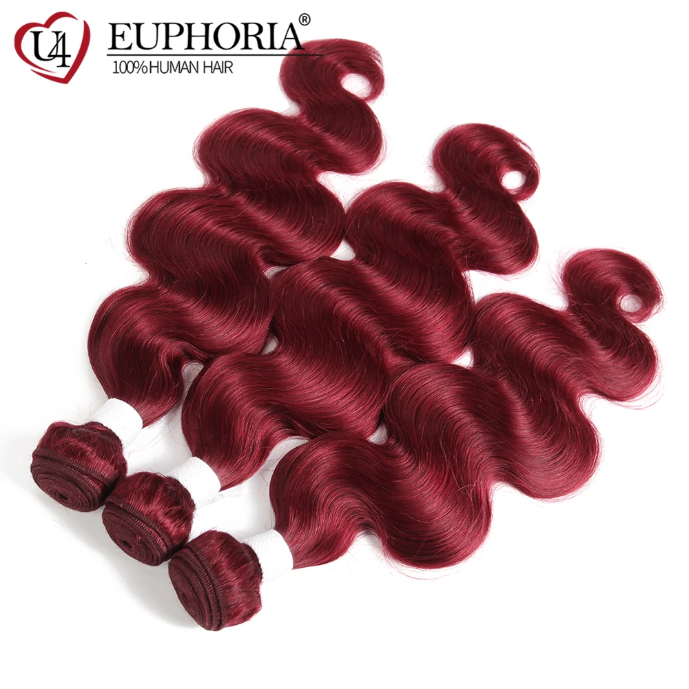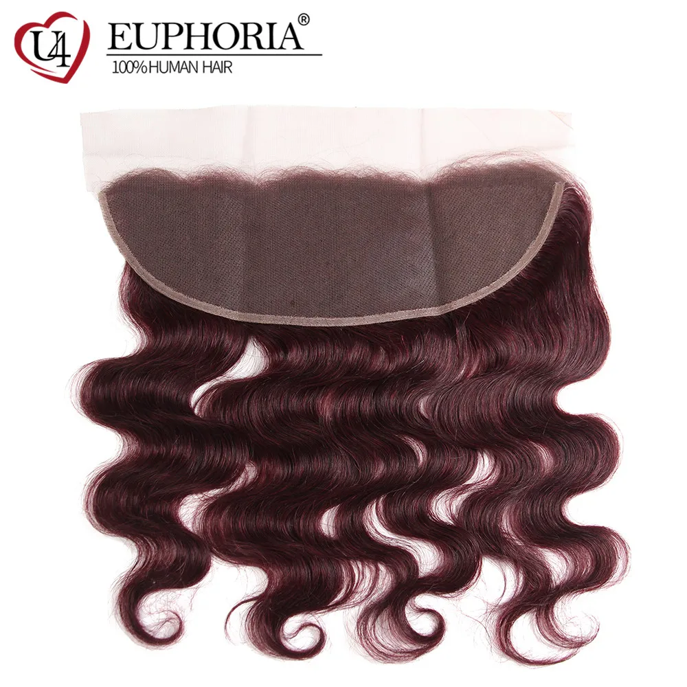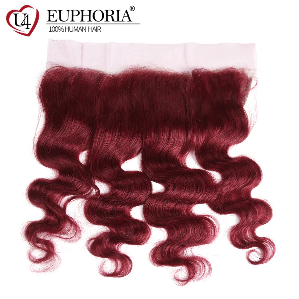 Бордовые волнистые пучки с фронтальной 13x4 кружевом 99J красные бразильские человеческие волосы Remy 3 пряди закрытием кружева Фронтальная Эйфория