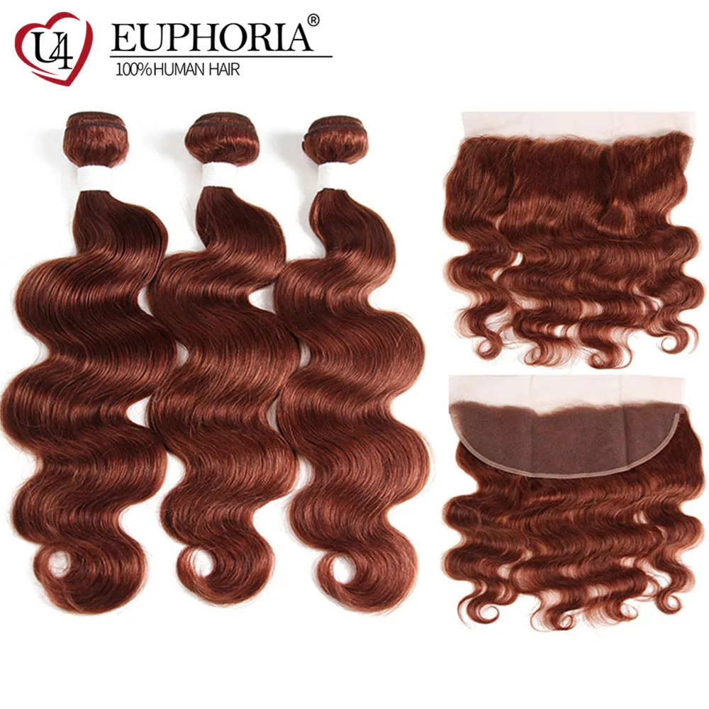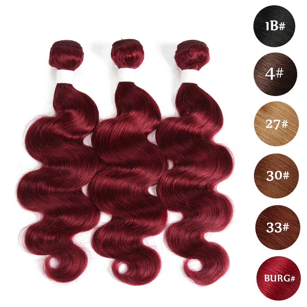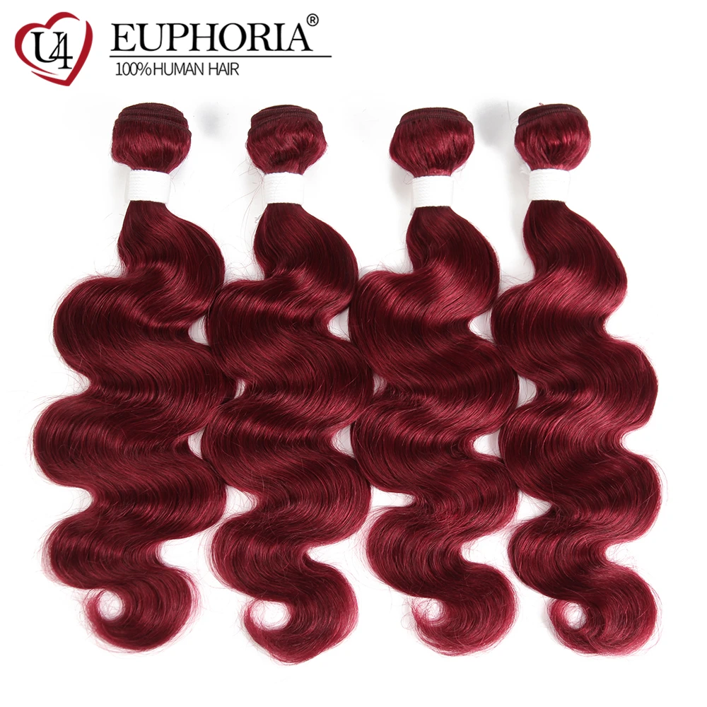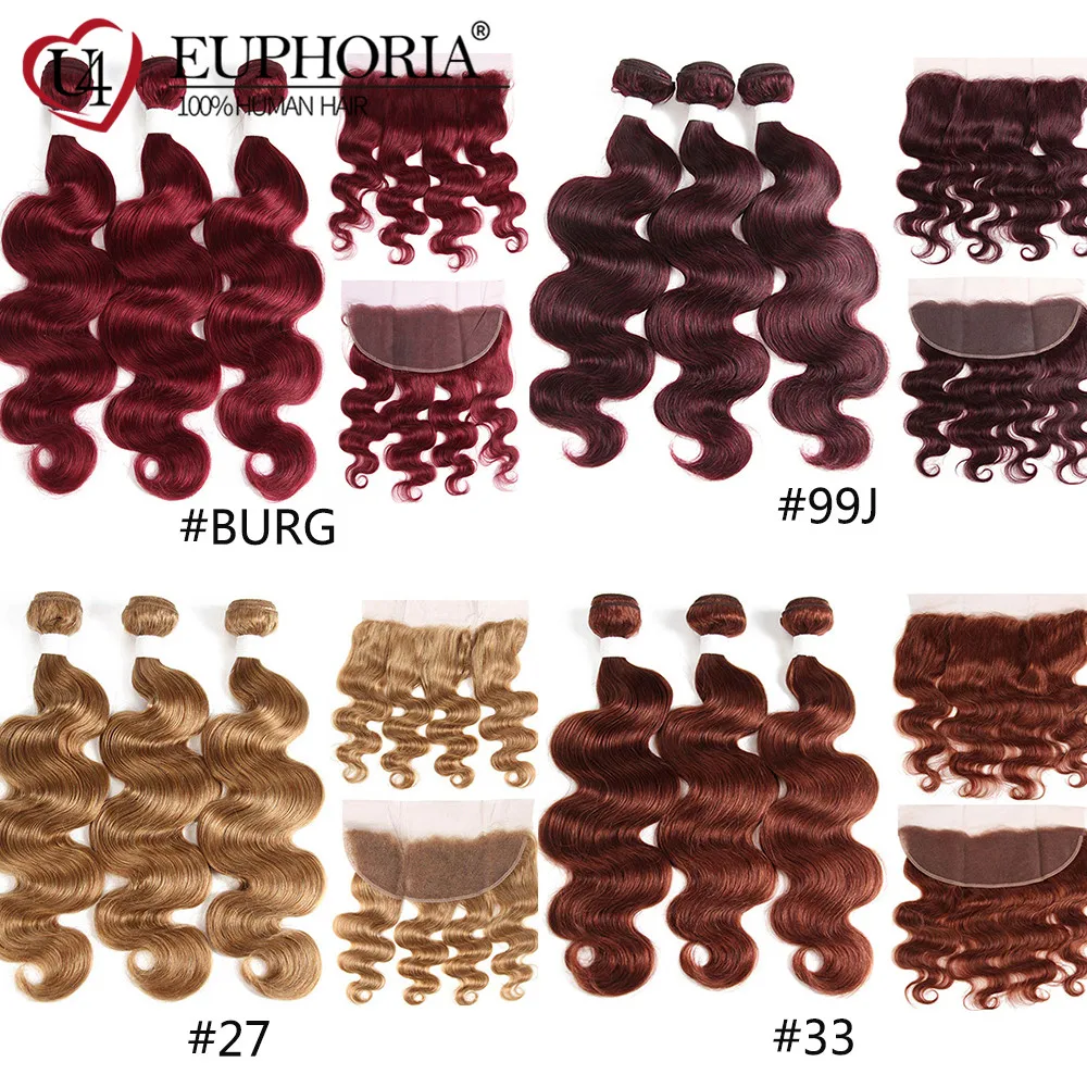 Бордовые волнистые пучки с фронтальной 13x4 кружевом 99J красные бразильские человеческие волосы Remy 3 пряди закрытием кружева Фронтальная Эйфория