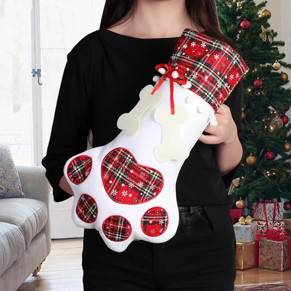 Рождественские носки OurWarm, красные, синие клетчатые носки в виде собачьих лап, подвесной Новогодний подарок для детей, украшение для рождественской вечеринки 46x28 см