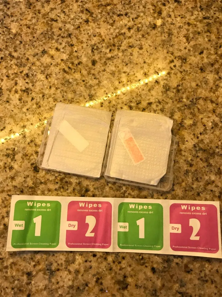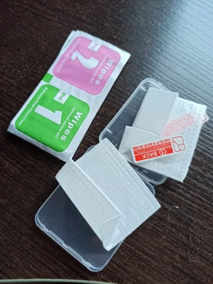 Доставка месяц. Два стекла, два комплекта салфеток. Салфетки старые видимо, практически сухие. Село хорошо, но диаметр меньше, не критично, но заметно и грязь будет забиваться. Экран реагирует хорошо, но олеофобное покрытие хуже, отпечатки видны. Брал для Ticwatch Pro. В общем думайте сами.