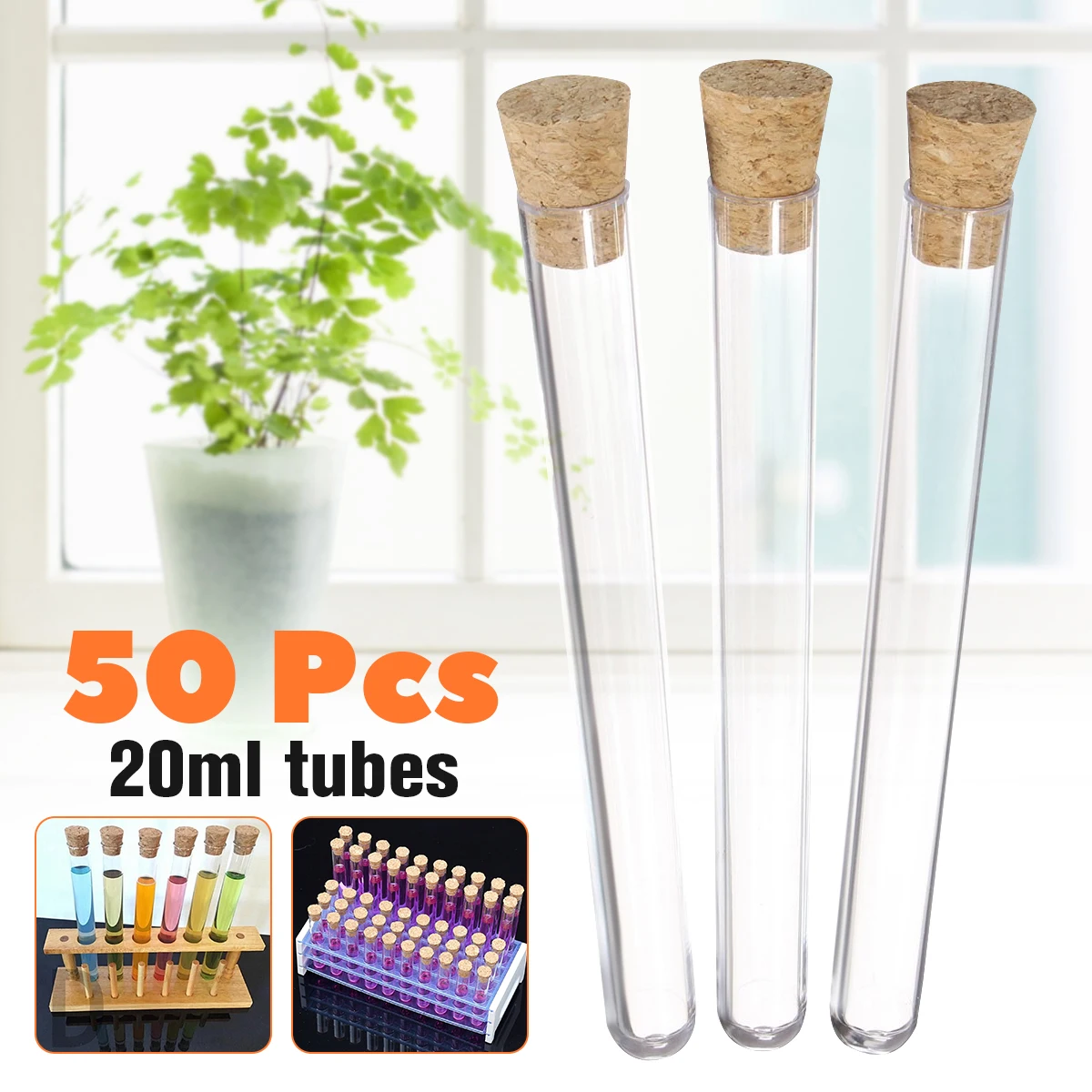 Прозрачные пластиковые пробирки с пробками, 50 шт., 20 мл