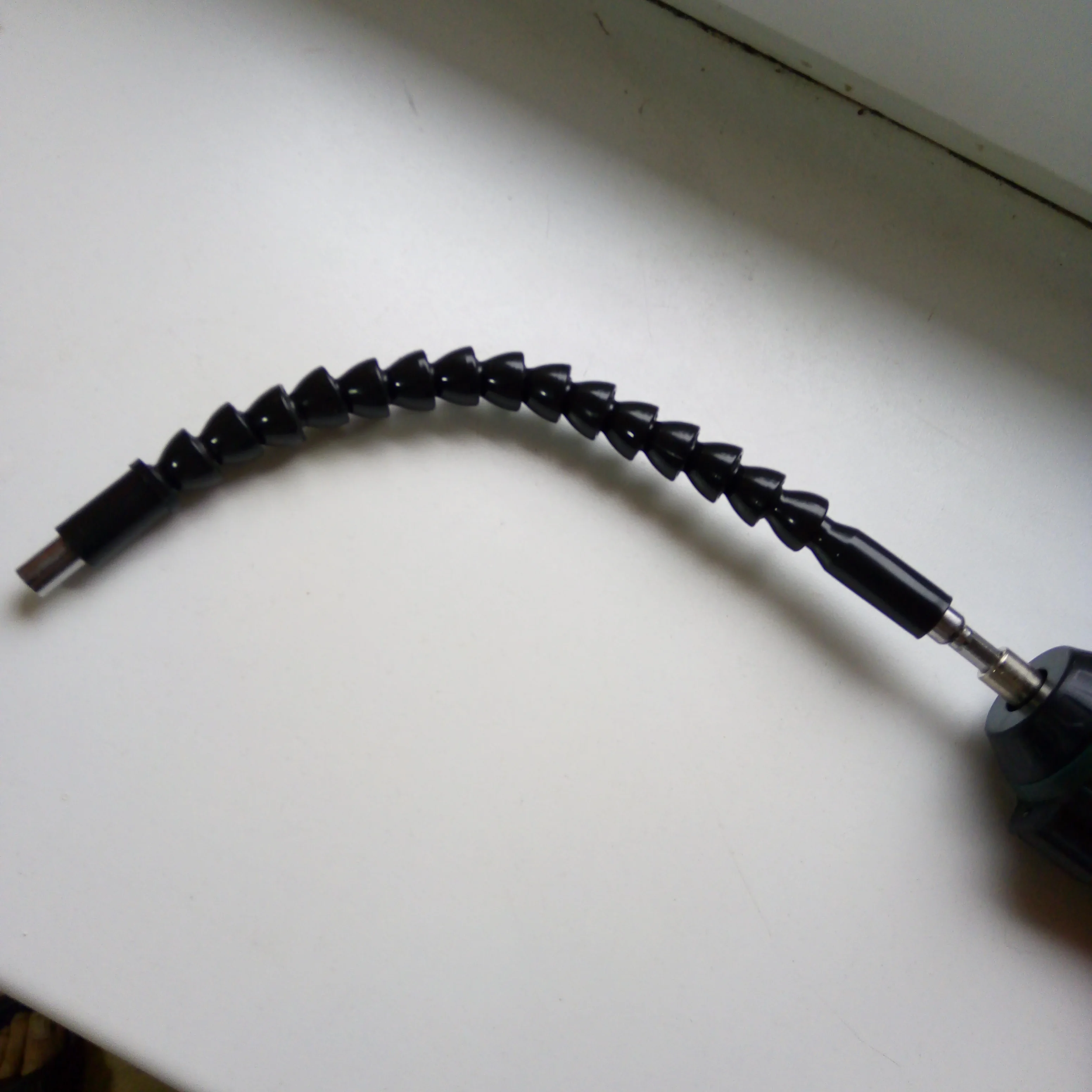 Удобная приспособив, позволяющая подлезть с шуроповертом в труднодоступные места. Цена копеечная. Однозначно нужно брать!