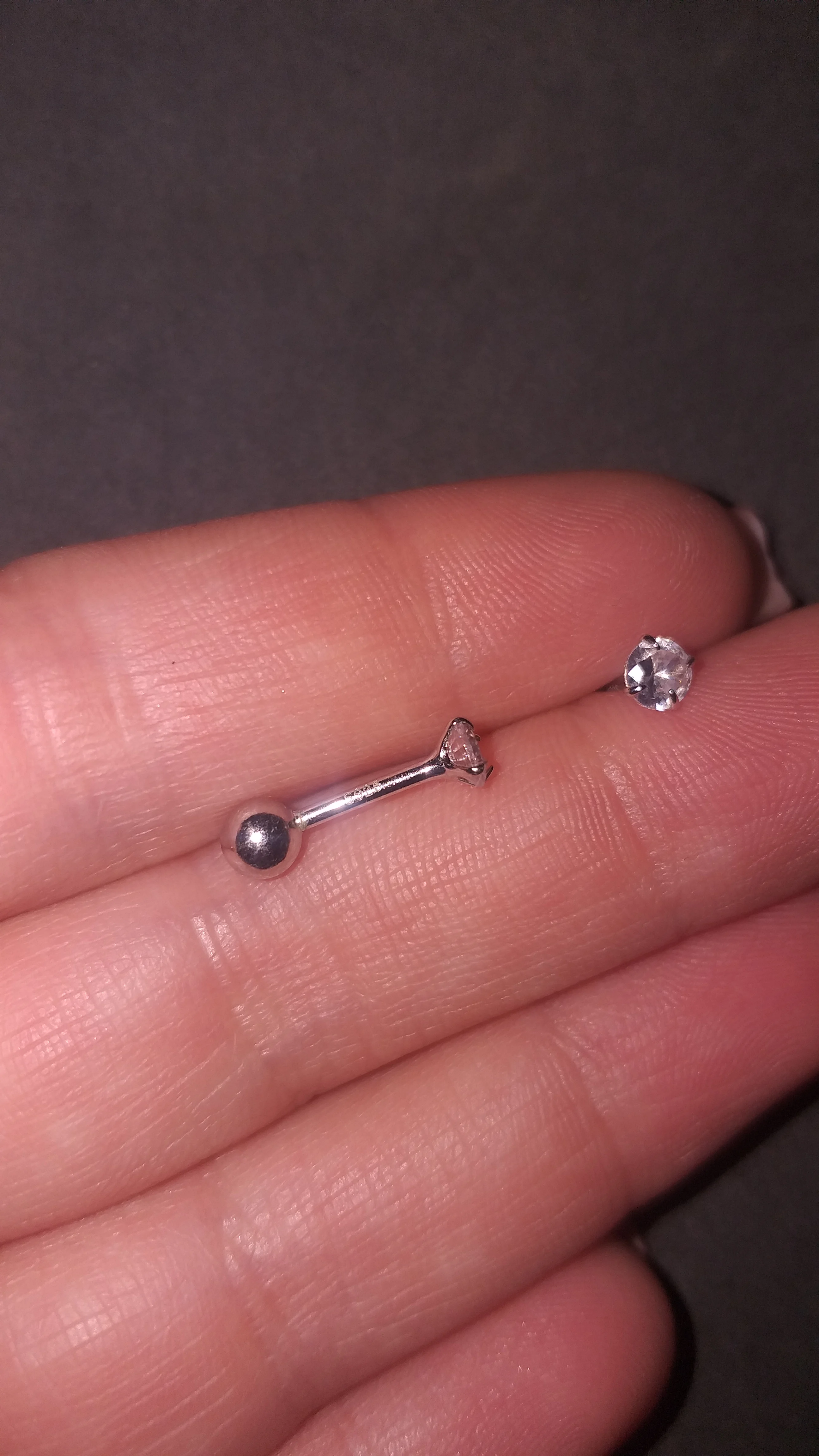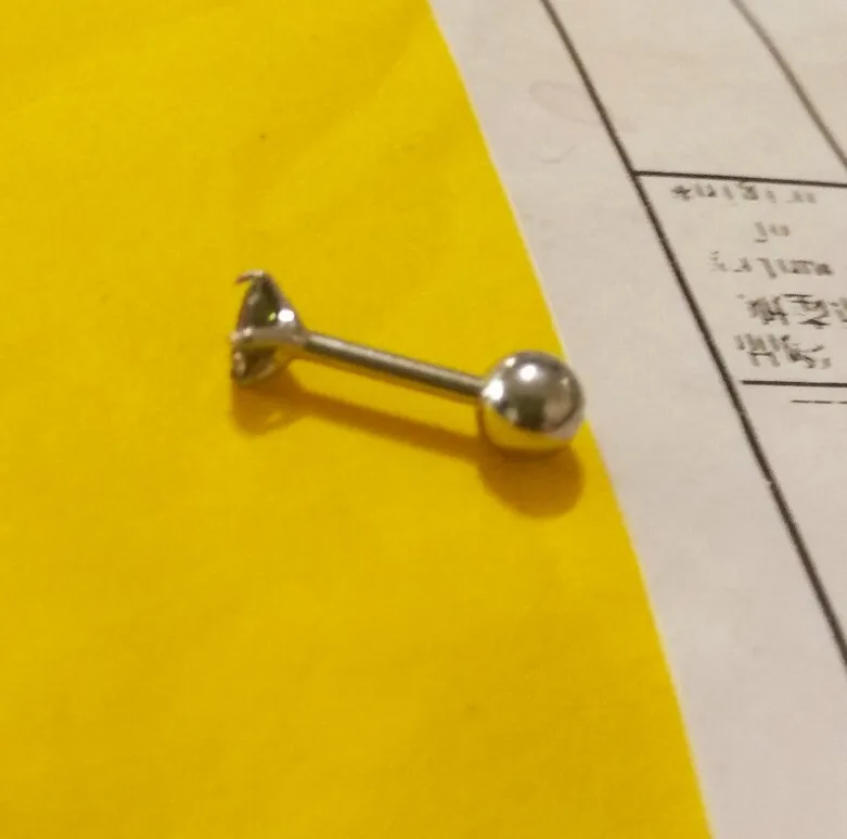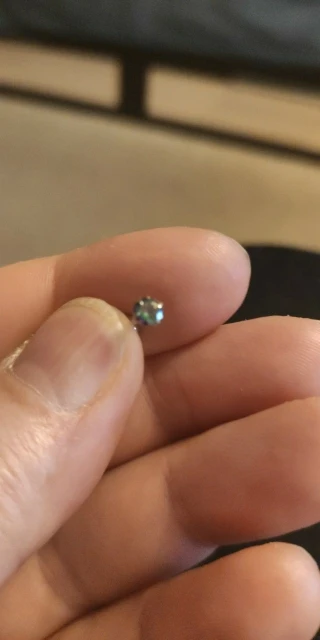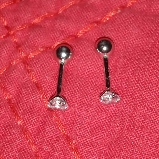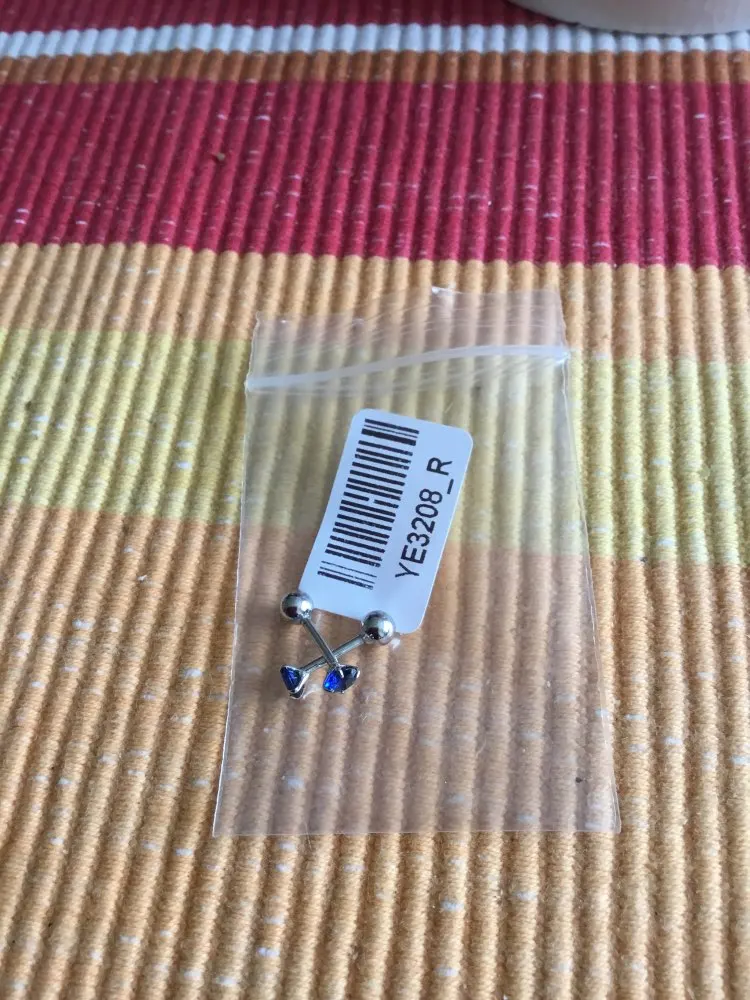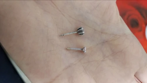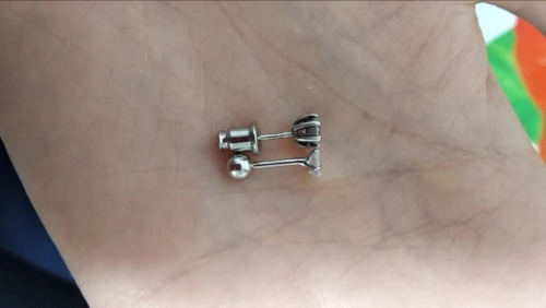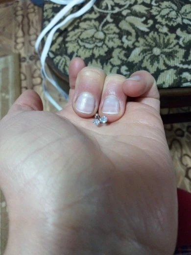 Шли долго, зря отзывов не послушалась, очень длинный штырь, почти сантиметр, и ничего с ним не сделаешь, торчит сзди, но он не толстый, вошёл свободно. А мочка у меня не маленькая. Шарик закручивается, но он такой маленький, в руке не найдёшь. Не знаю, какое тут серебро, но своих денег не стоит. Хотя камешки красиво блестят. Маленькие серьги совсем.