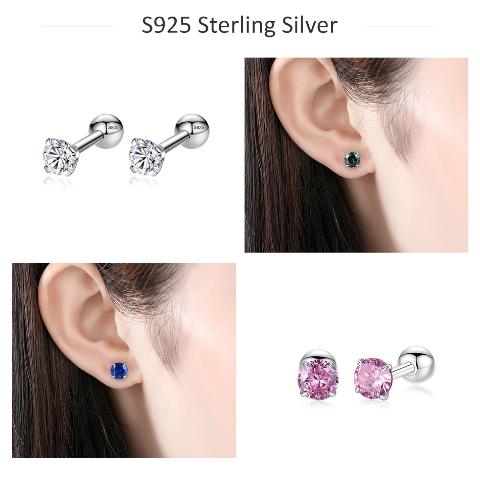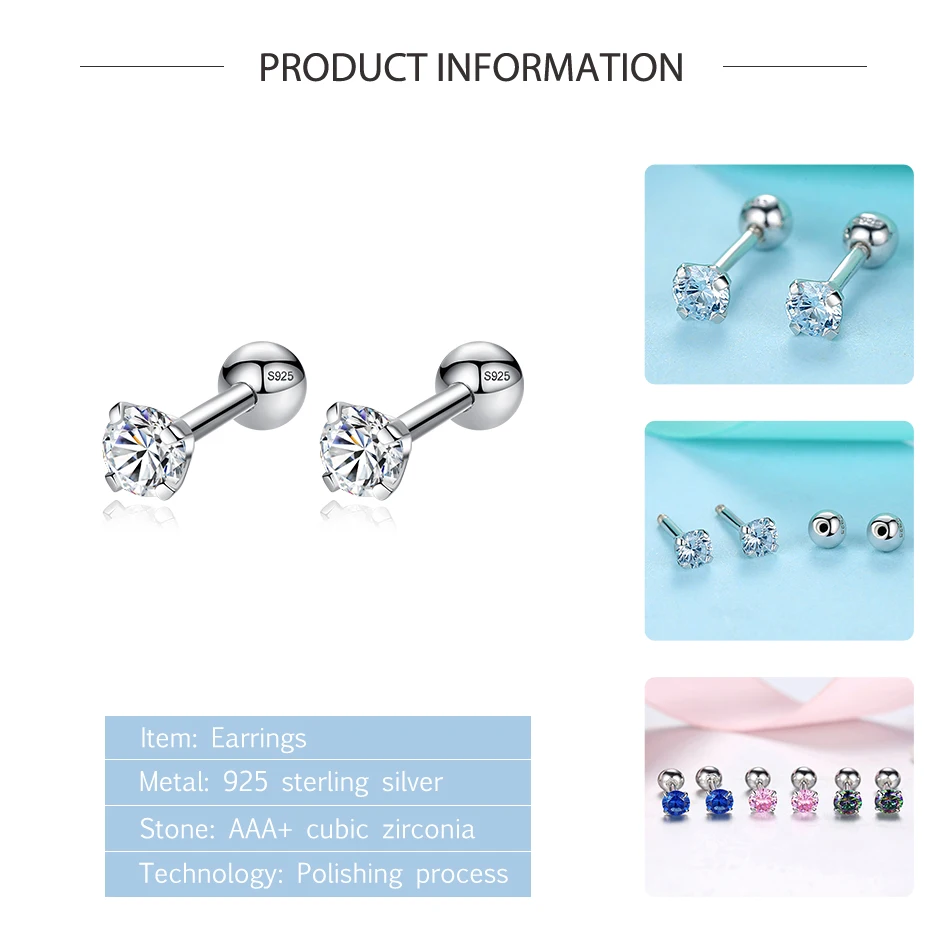 Серьги-гвоздики женские из серебра 925 пробы, с фианитами