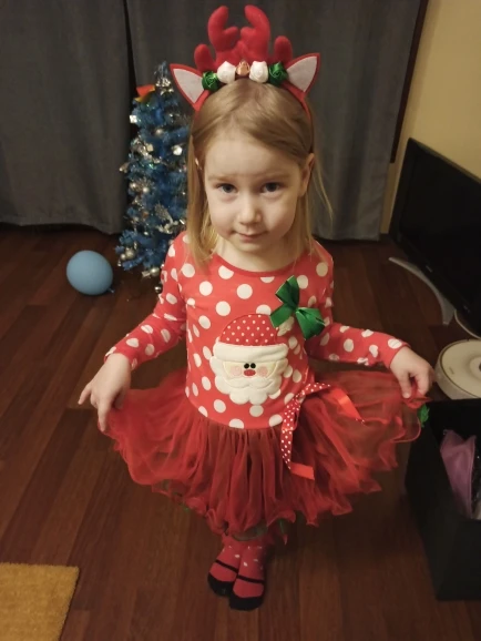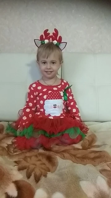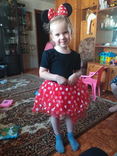 Заказывали на 5 лет, нам строго по размеру сейчас (4,5) года ребенок худенький, на полного будет мало! Учитывайте это при заказе. первое ощущение это восторг, все мягкое и не колется. Можно отпаривателем пройтись по юбке и она будет еще пышнее.