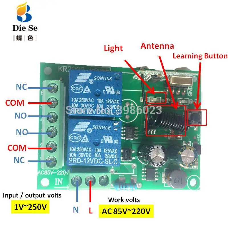 433 МГц универсальный пульт дистанционного управления для ворот гаража AC 110 В 220 В 2CH релейный модуль приемника и 4 кнопки дистанционного управления ler RF переключатель