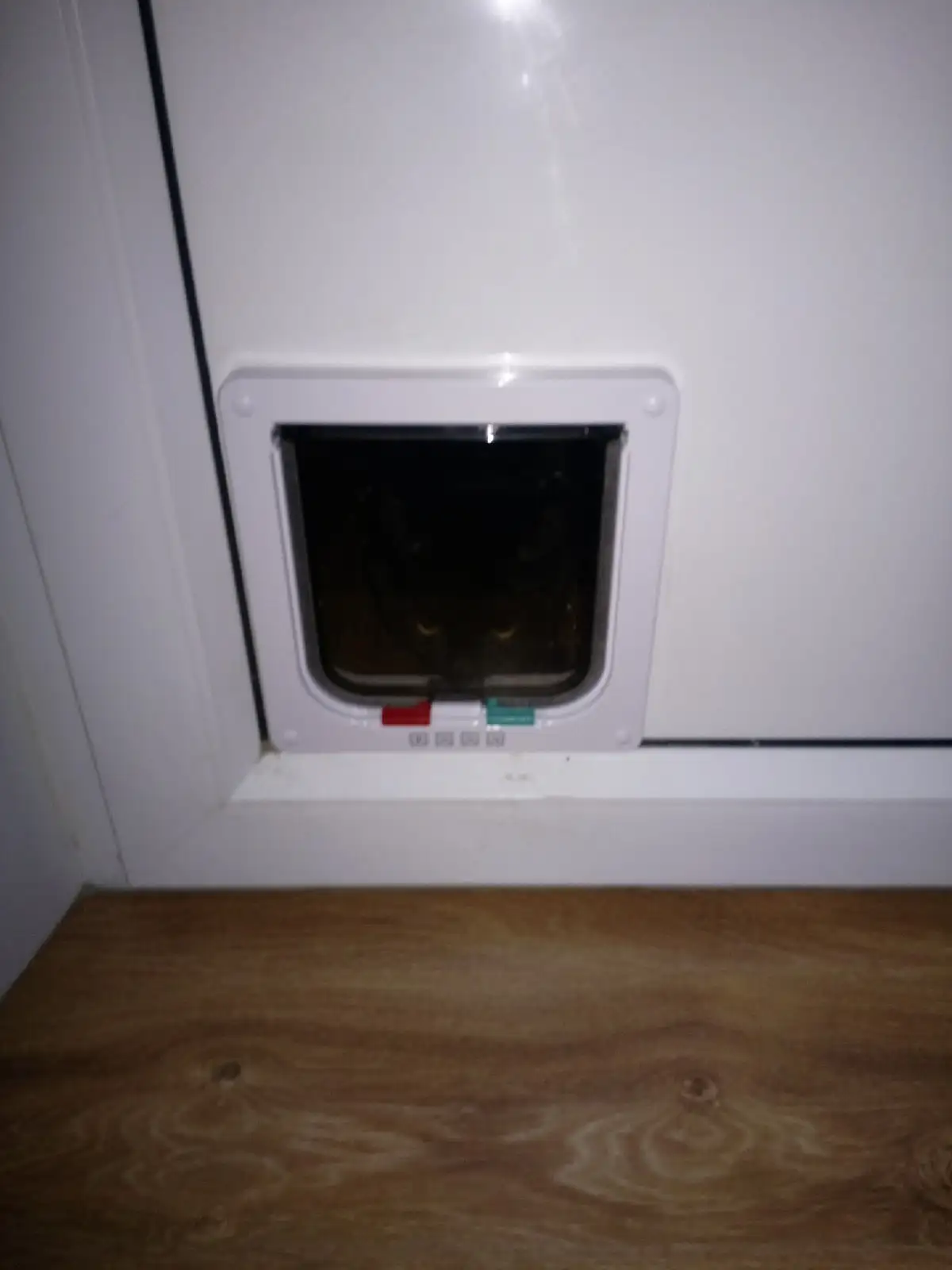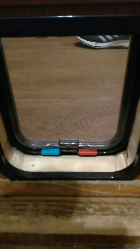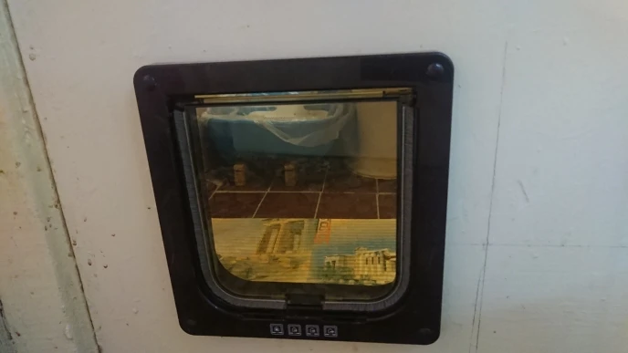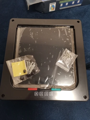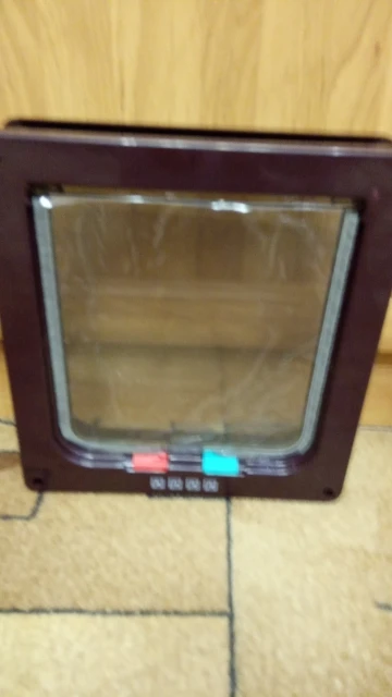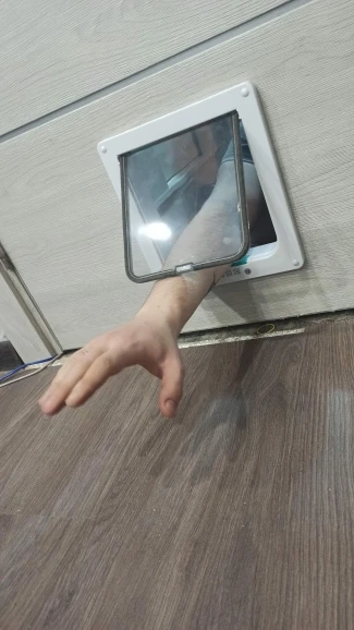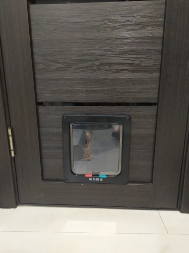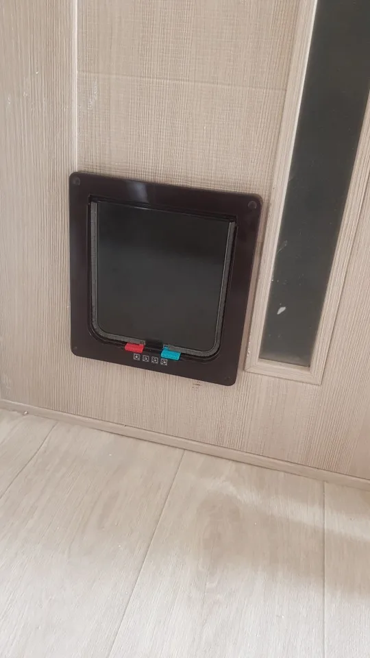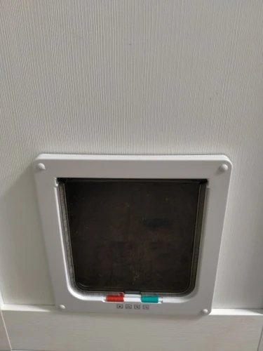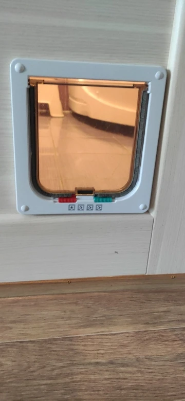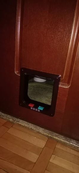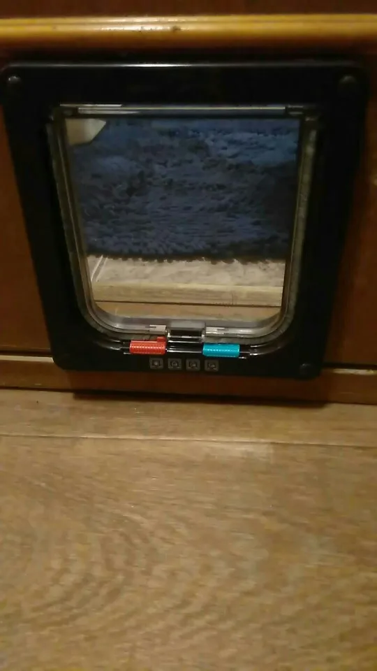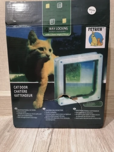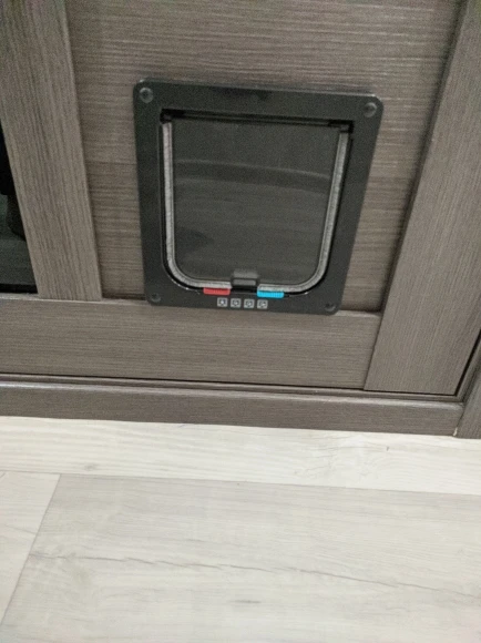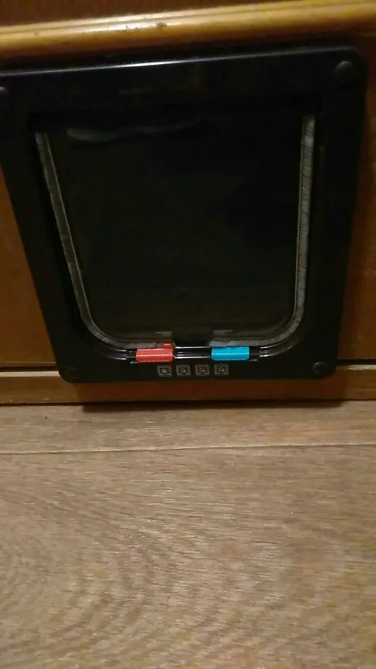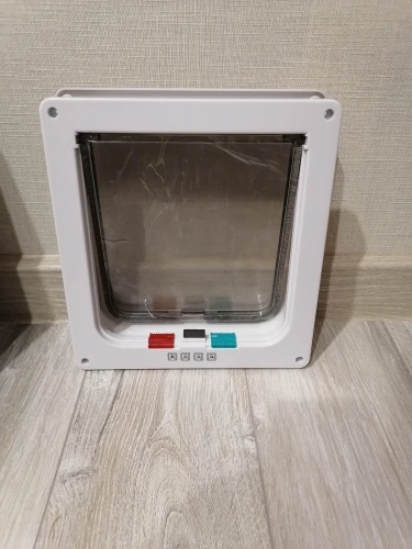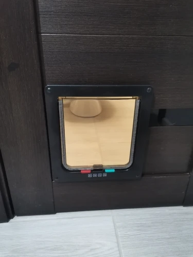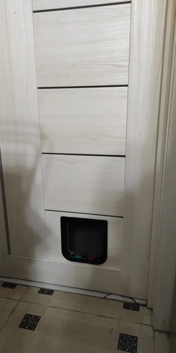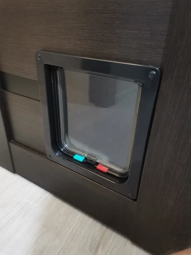 Все вроде хорошо, но дверь в туалет (людская) тоньше пластиковой. Небольшой зазор с внутренней стороны. Думаю можно решить этот вопрос, но честно - лень разбирать. Не совсем попал с размером для большого кота. Надо было брать пошире! С установкой проблем не возникло, в течении 40 минут всё уже стояло. Кнопки блокировок пришлось обе снять, так как самопроизвольно убегали. Самое сложно - обучить котов туда попадать, обратно освоили немного.