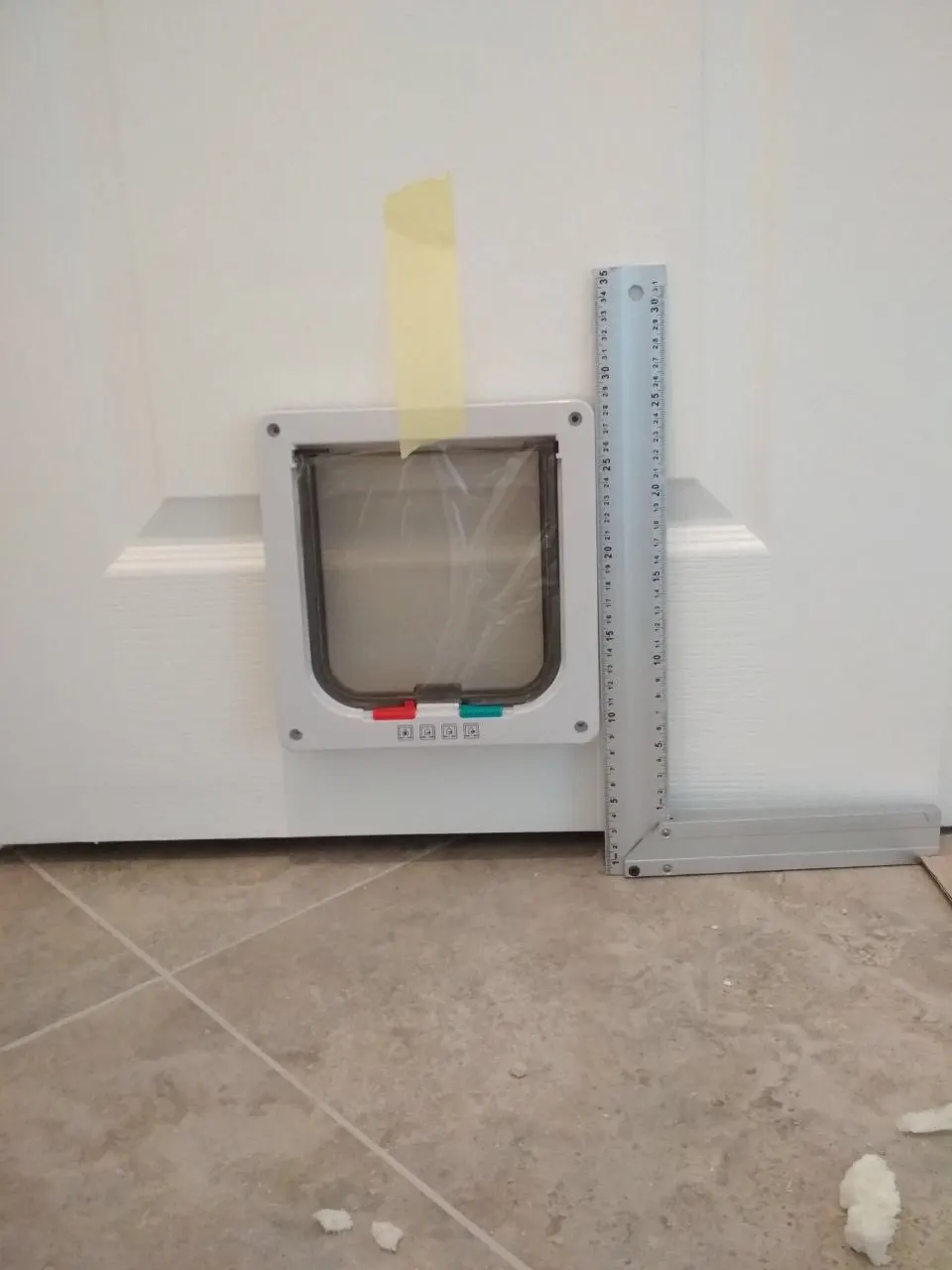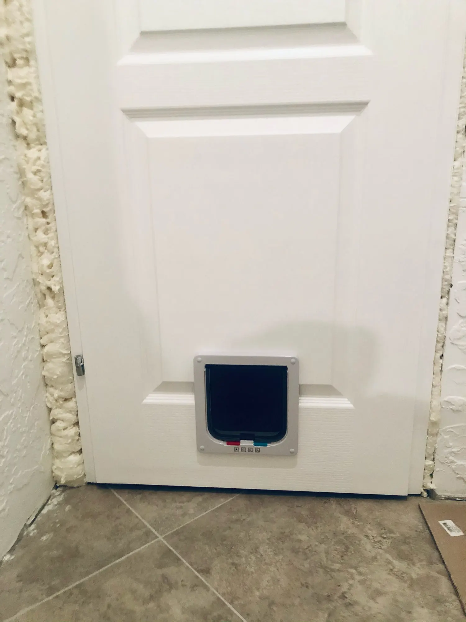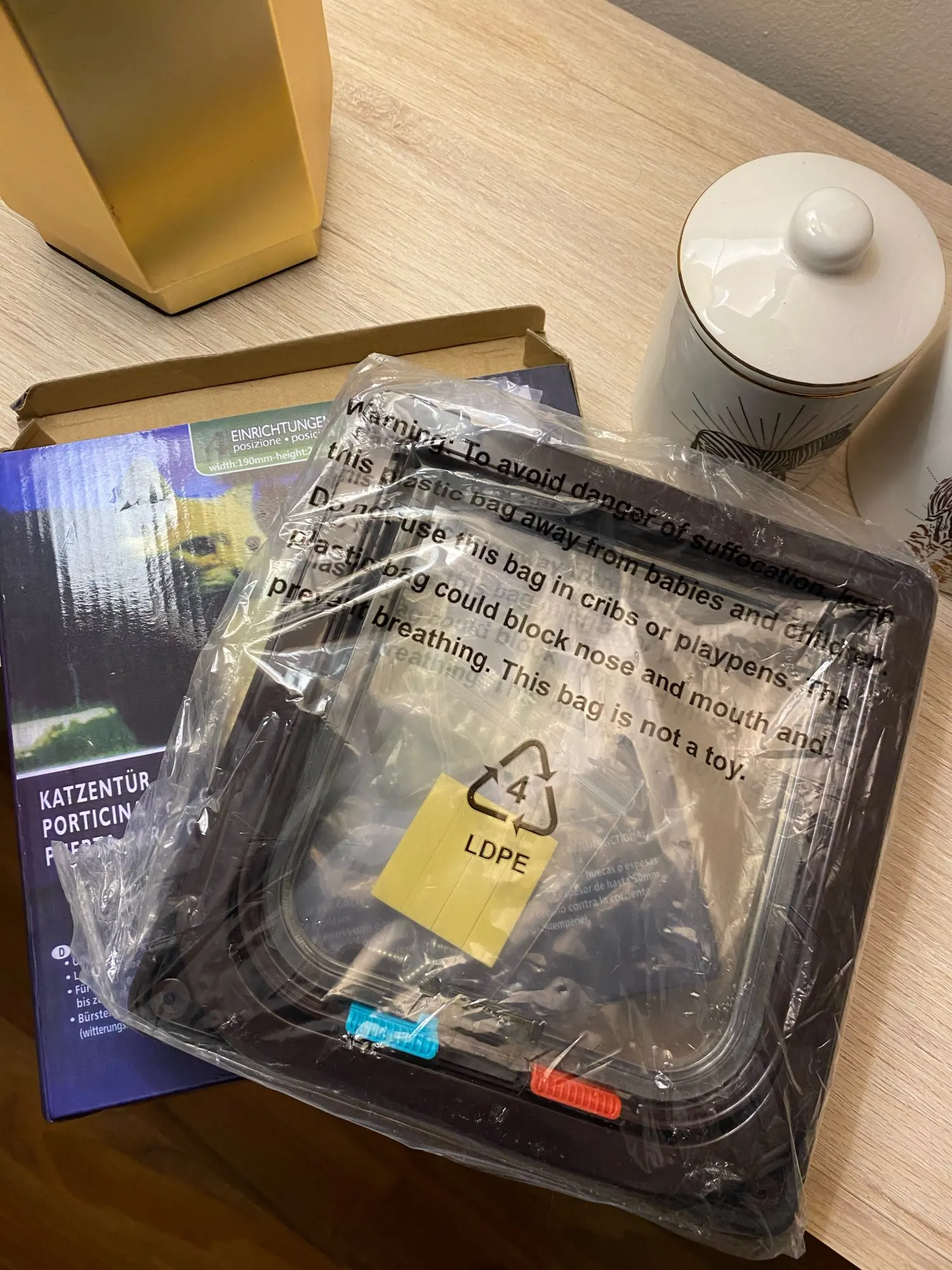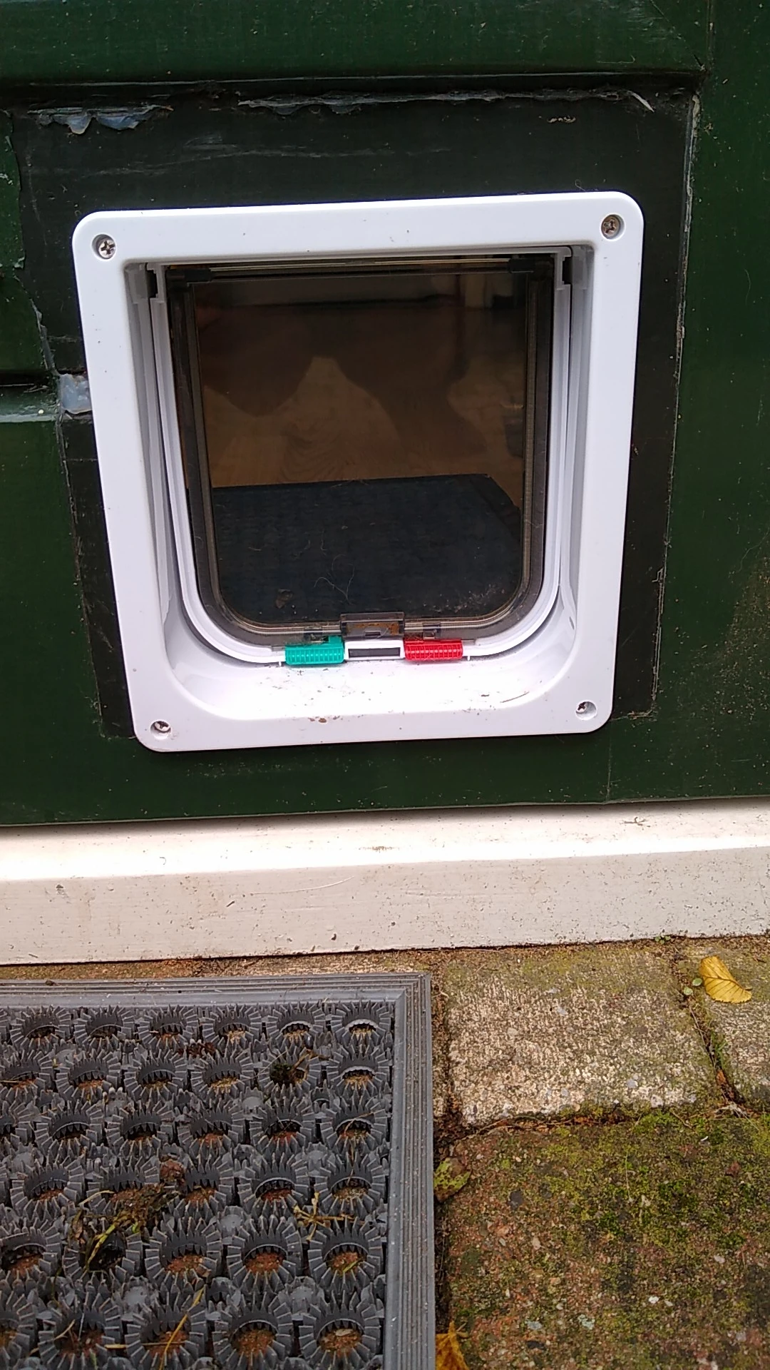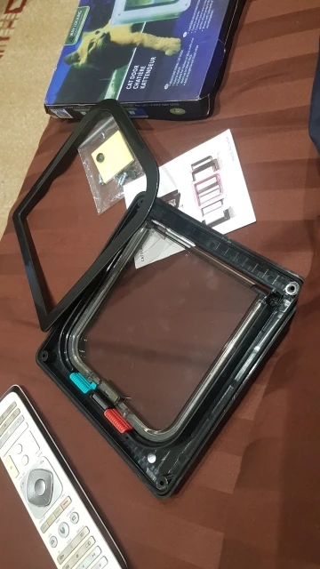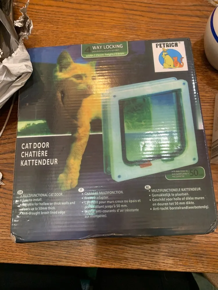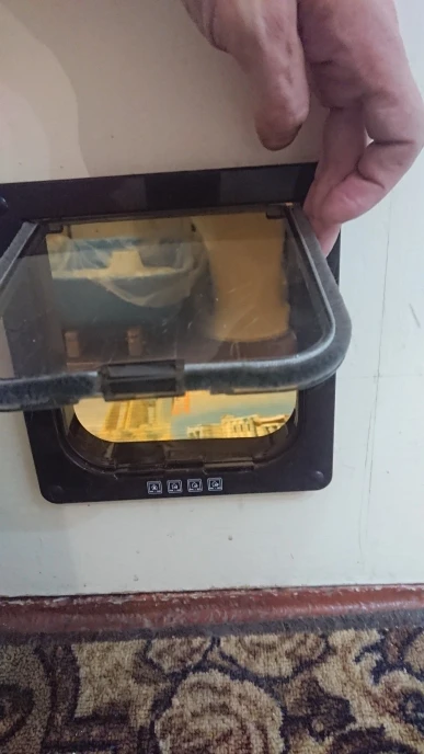 Все вроде хорошо, но дверь в туалет (людская) тоньше пластиковой. Небольшой зазор с внутренней стороны. Думаю можно решить этот вопрос, но честно - лень разбирать. Не совсем попал с размером для большого кота. Надо было брать пошире! С установкой проблем не возникло, в течении 40 минут всё уже стояло. Кнопки блокировок пришлось обе снять, так как самопроизвольно убегали. Самое сложно - обучить котов туда попадать, обратно освоили немного.