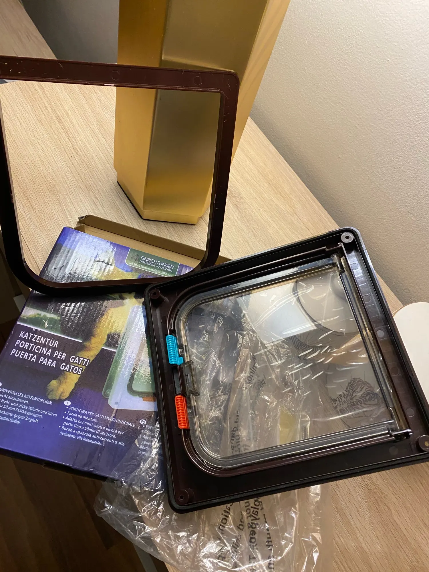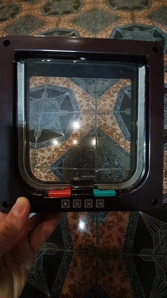Качество отличное. Немного отличается от изображения на сайте. По факту основная рамка с дверцей прикручивается саморезами к двери, а вторая с обратной стороны приклеивается на двухсторонний скотч. Дверца прозрачная, думаю лучше бы была немного затемненная или матовая. Между рамками остаётся пространство, дверь толще чем рамки. Необходимо чем-то закрыть, не красиво видно светлую часть дерева. Можно в принципе покрасить. Видно на фото номер 3. Кошка довольна)))