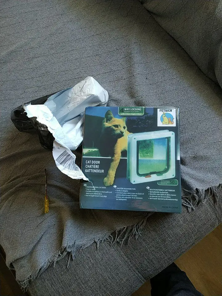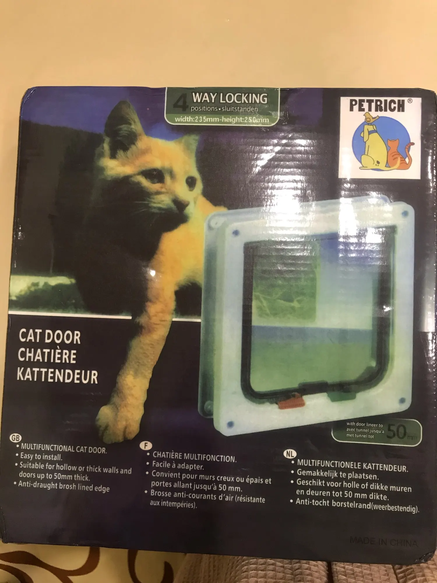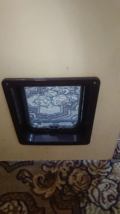 Все отлично, покупал за 1060 руб. Дошло целое, брал max размер для кота и видимо правильно сделал, не показалась слишком большой, самое то. подогнал под толщину двери, прикрутил на саморезы входящие в комплект. Установка заняла час-полтора.