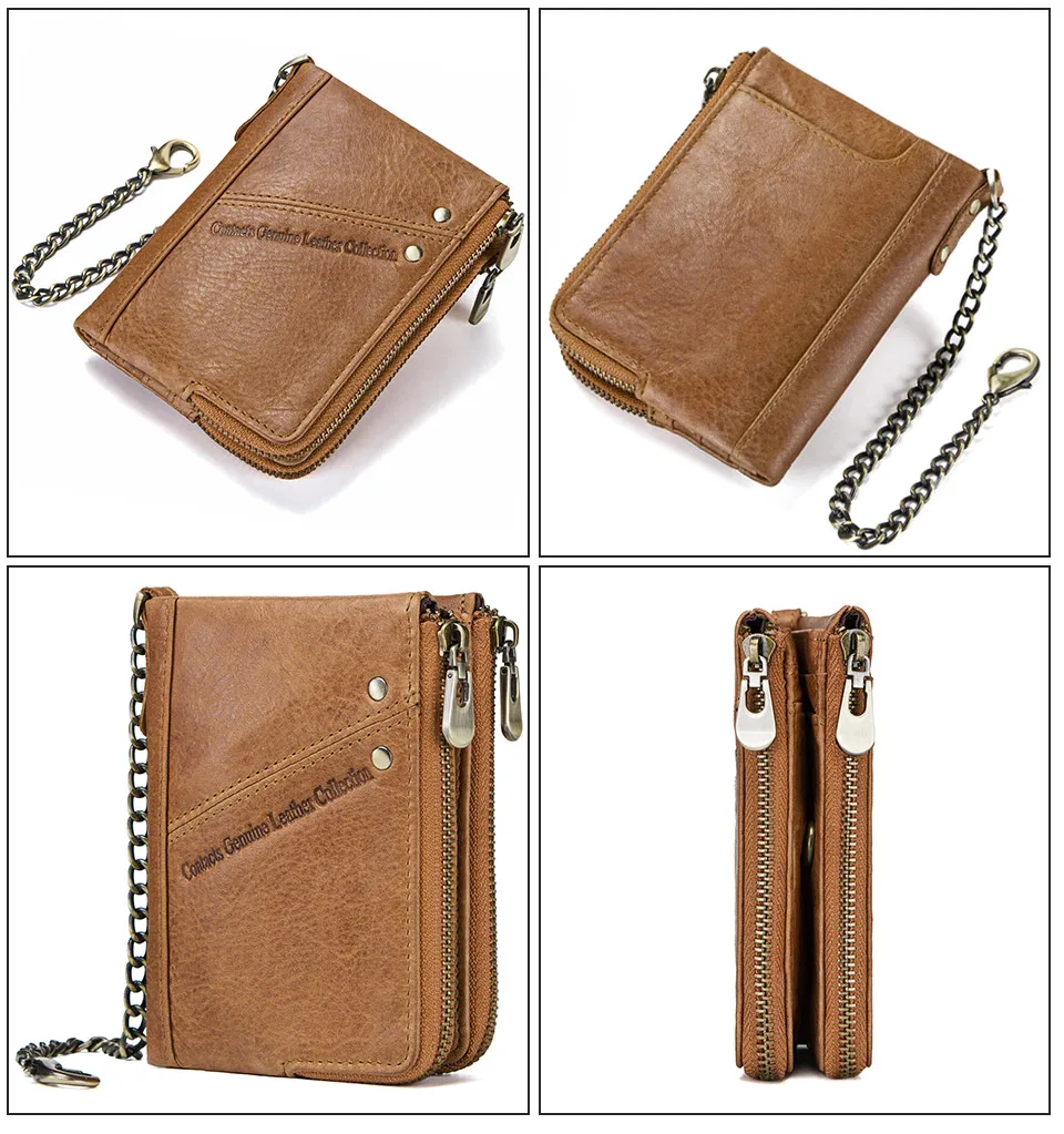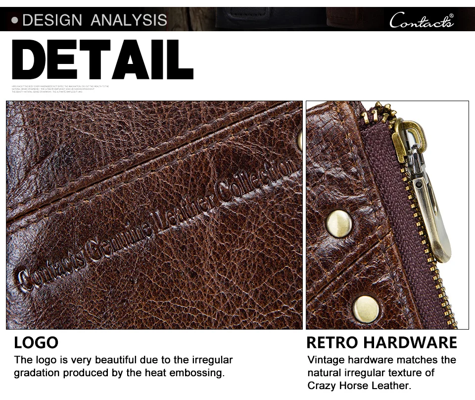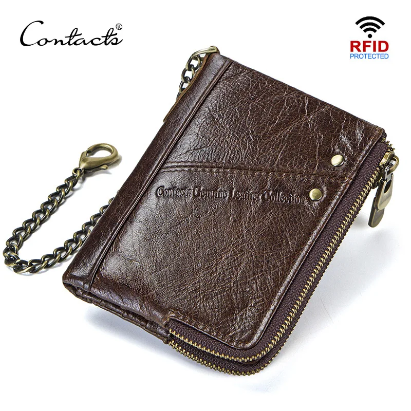 CONTACT'S кошельки из натуральной кожи для мужчин RFID короткие портмоне для карт двойная молния дизайн небольшая сумка для денег для мужчин 2019
