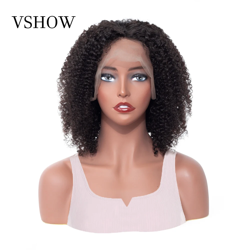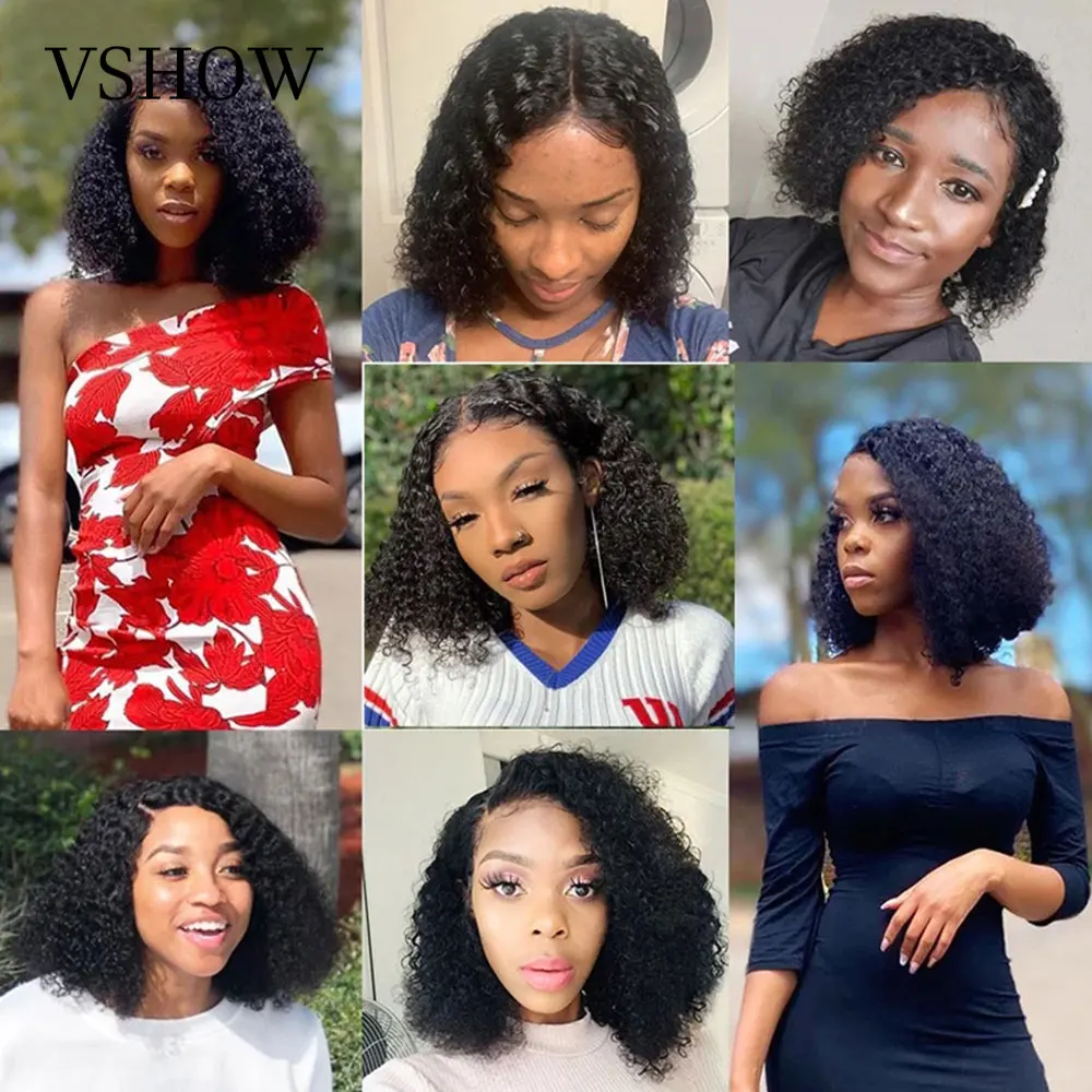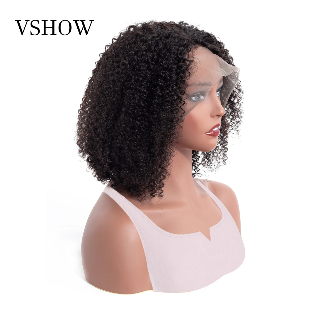 Монгольский Боб кудрявый вьющиеся парики шнурка 180% 13x4 Короткие Боб Синтетические волосы на кружеве человеческих волос парики для чернокожих Для женщин VSHOW