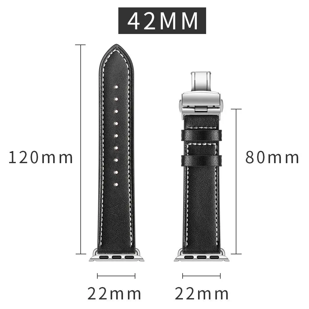 Роскошный ремешок из натуральной кожи для Apple Watch SE, ремешок 42/38/44/40 мм, три цвета, пряжка-бабочка, Iwatch, браслет серии 6 5 4 3 2 1