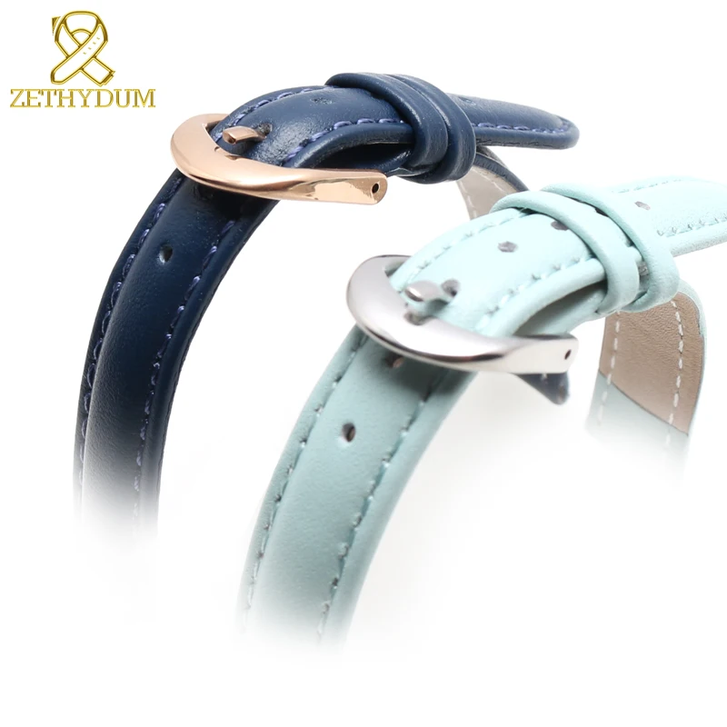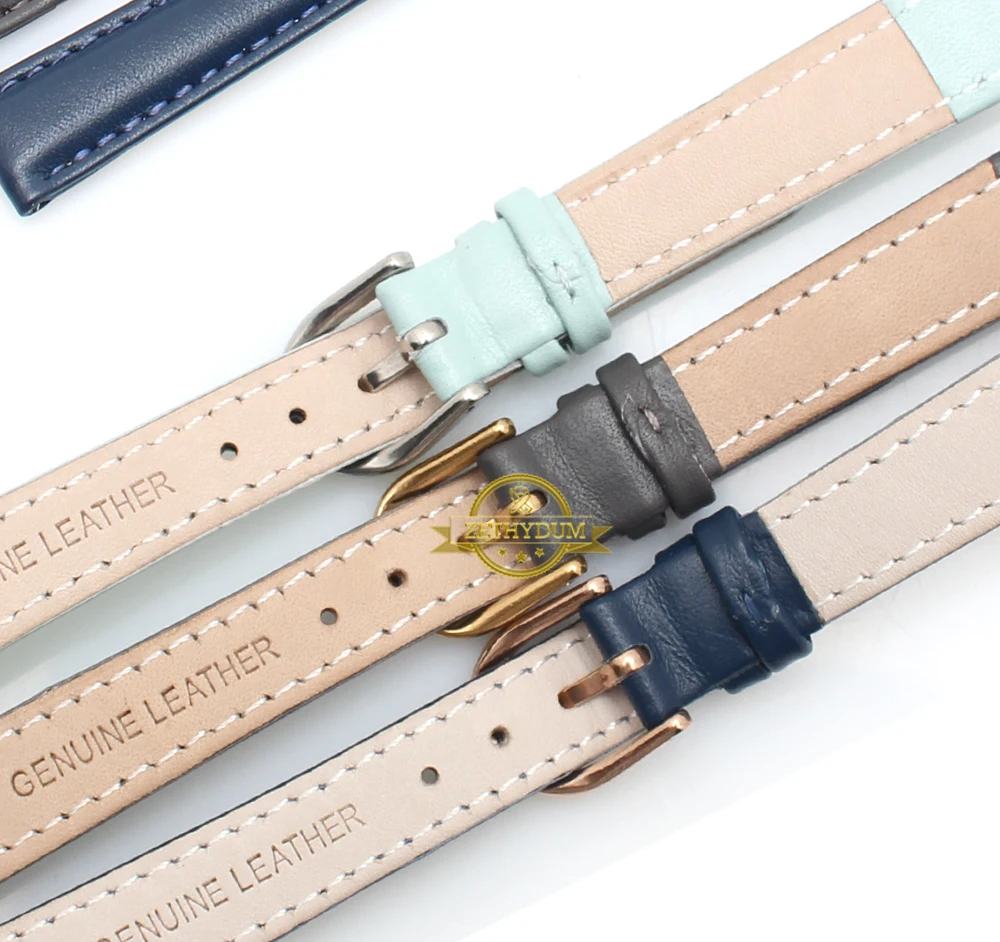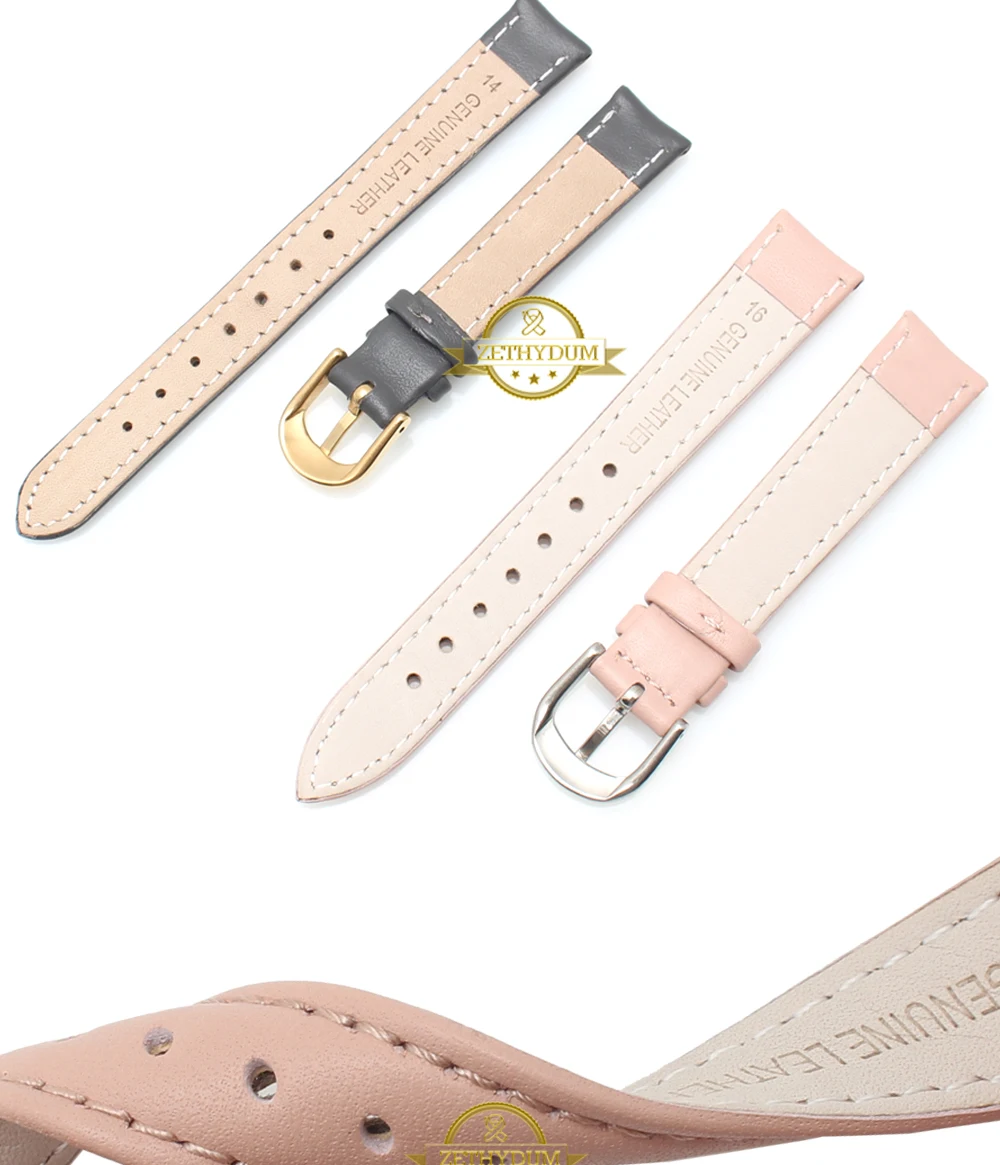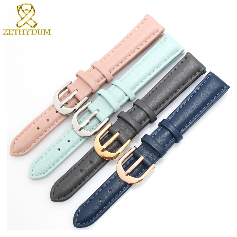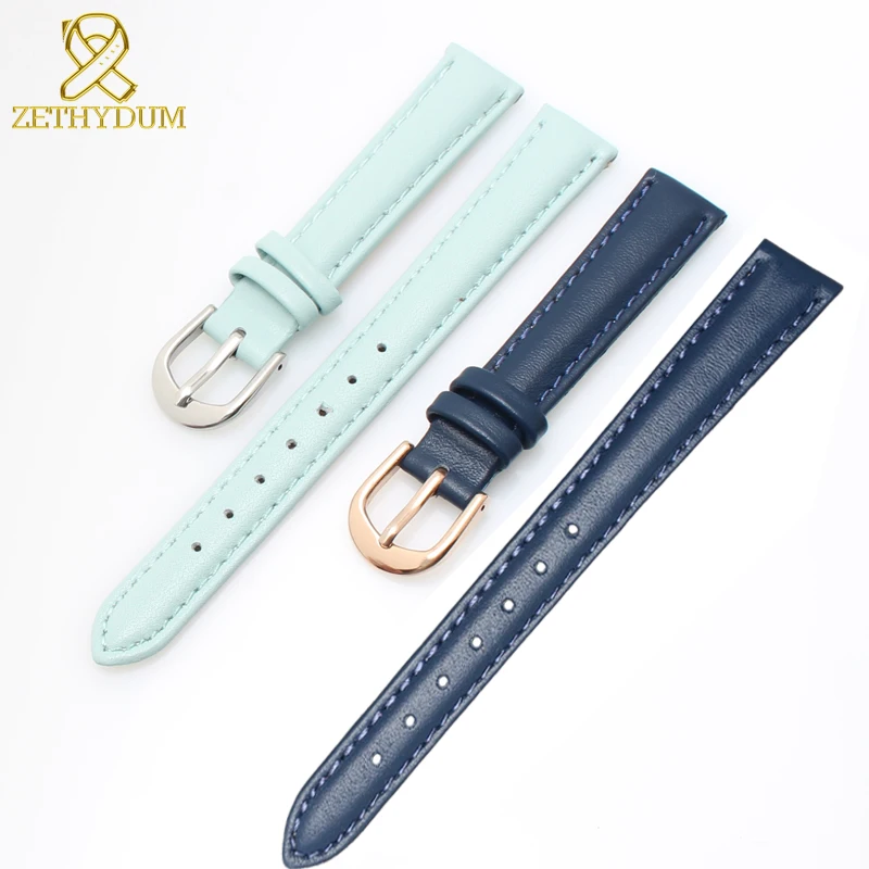 Ремешок из натуральной кожи для женских часов, простой мягкий браслет для наручных часов, Синий Розовый Серый, 14 16 18 20 мм