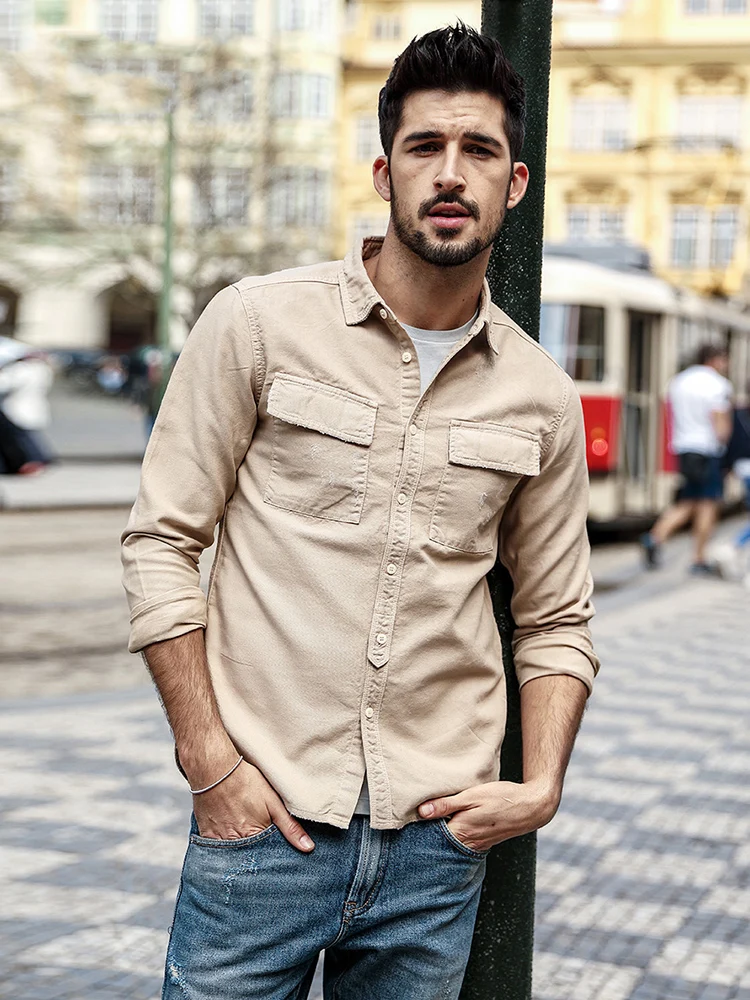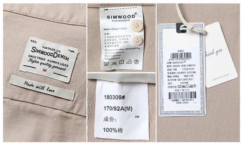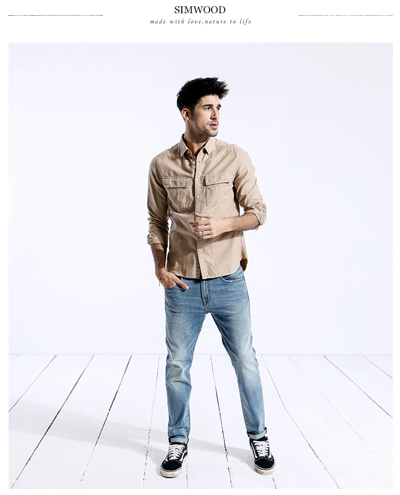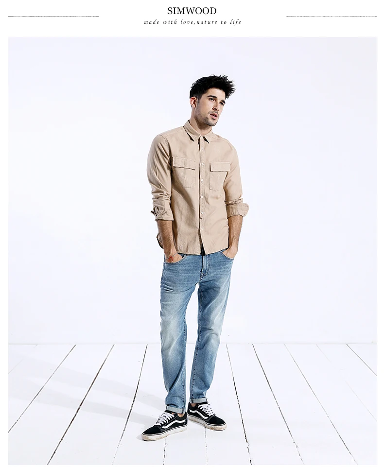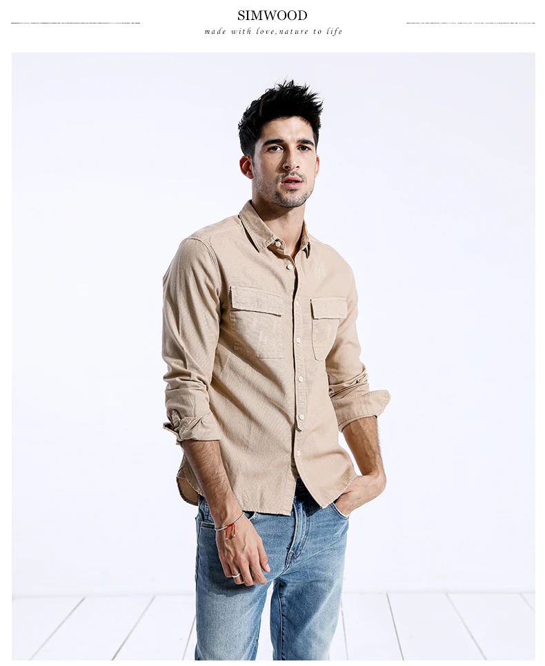 Мужская повседневная рубашка SIMWOOD, модная приталенная рубашка большого размера с квадратным воротником и длинными рукавами, брендовая одежда, модель 180309 на осень, 2019