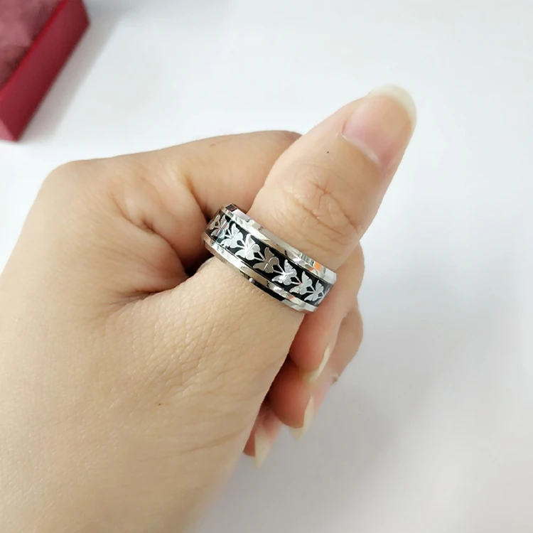 8 мм Бабочка инкрустированные кольца пар 316L Нержавеющаясталь крутые байкерские украшения темпера Для мужчин футболка в стиле Джокер Стиль рок Для мужчин мужское кольцо высокого качества