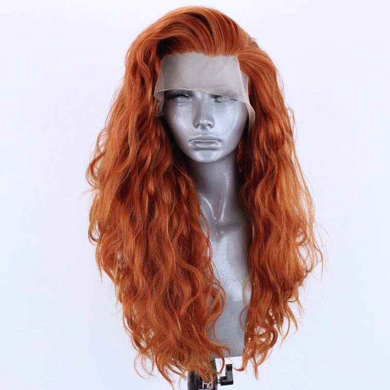 Харизма синтетический парик фронта шнурка Имбирно-оранжевый парик для женщин термостойкие волосы волокна длинные волнистые парики фронта шнурка косплей