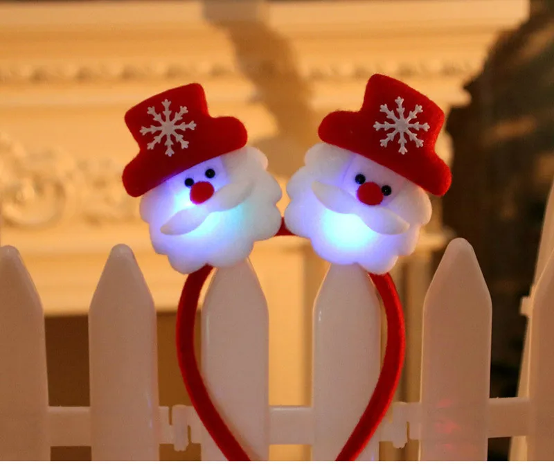 Милый Рождественский Санта олень снеговик медведь светодиодный светильник Повязка На Голову светильник с двойной головкой Рождественское украшение красный новый год E
