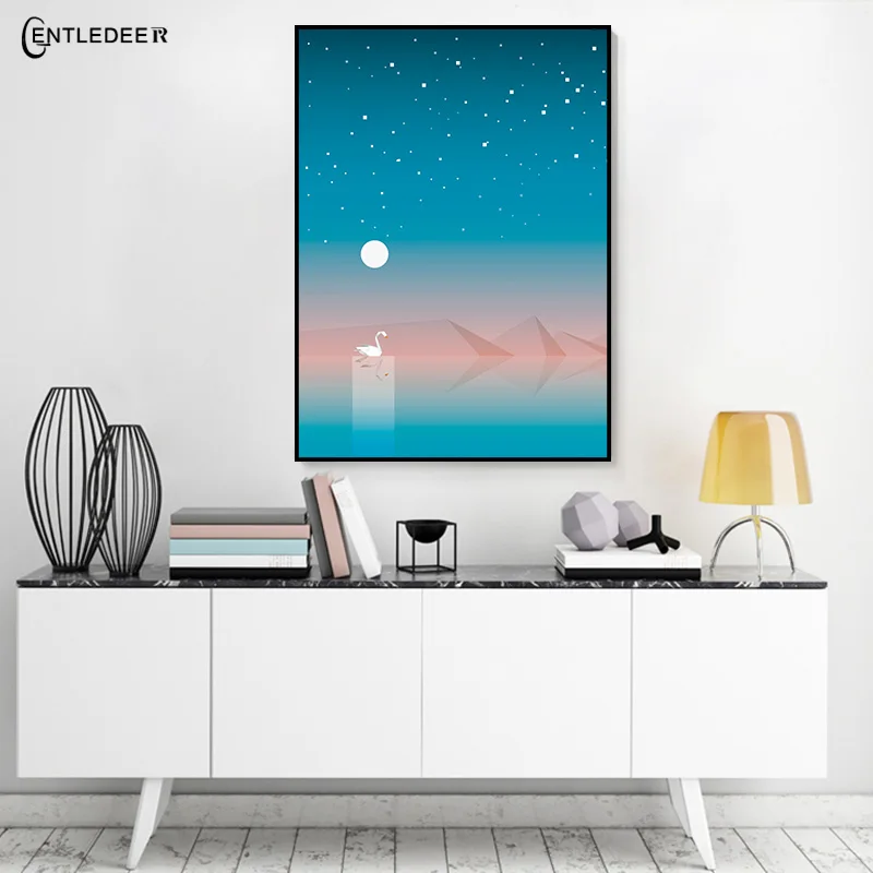 Постеры Moon Scener Swany, эстетическая картина, принты без рамки, настенное искусство, спальня, бар, гостиная, домашний декор, Картина на холсте