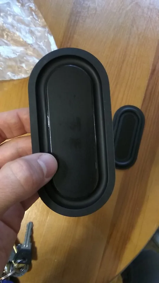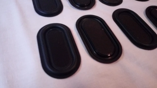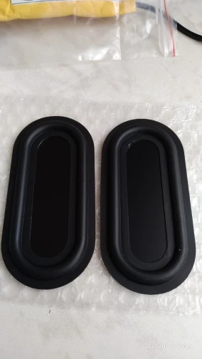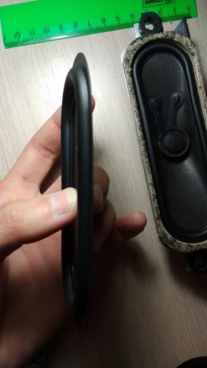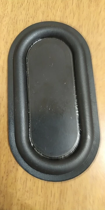 Резина и очень мягкая, имеет эластичность, чтобы отслеживать НЧ-динамик