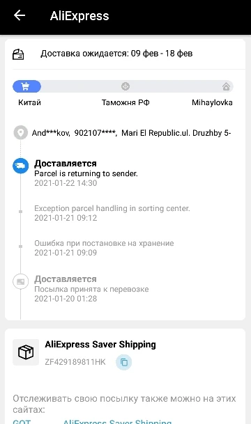 Страна: RU Доставка: Standard Shipping 08.02.2021