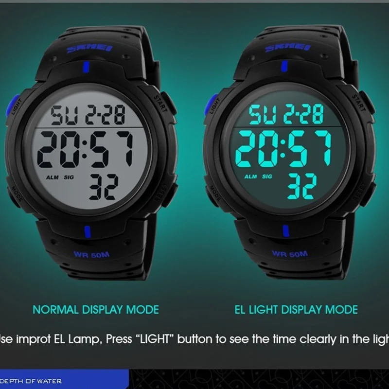 Часы наручные SKMEI Мужские Цифровые, спортивные ударопрочные водонепроницаемые в стиле милитари, с большим циферблатом и будильником