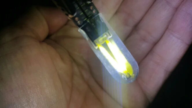 Не плохая лампочка с равномерным круговым освещением. Установленная в дополнительный стоп сигнал по яркости чуть чуть ярче (днем) чем лампа накаливания. При этом засветка рассекателя плафона равномерная, а не звездочкой как при дискретных светодиодах