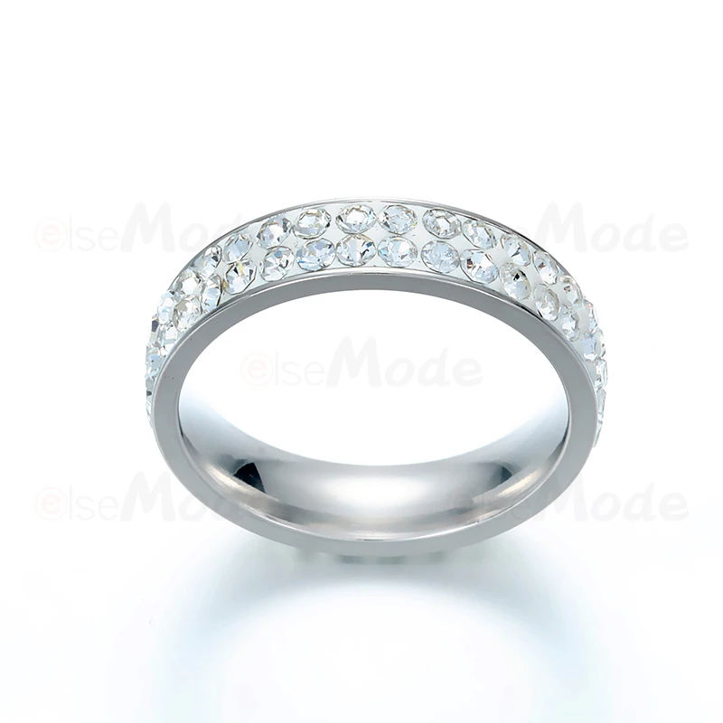 ELSEMODE модное Двухрядное блестящее обручальное кольцо с кристаллами для женщин очаровательные обручальные кольца из нержавеющей стали ювелирные изделия женские кольца
