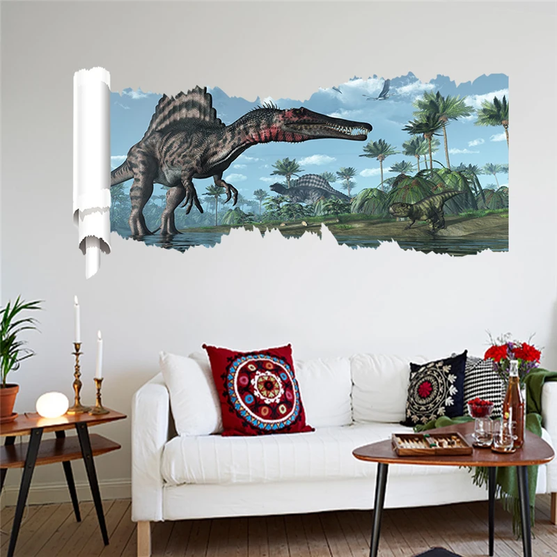 Настенные Стикеры с разбитыми отверстиями, Креативные 3d Динозавры для детской комнаты, украшение для дома, сделай сам, период Юрского периода, настенные животные, художественные ПВХ наклейки