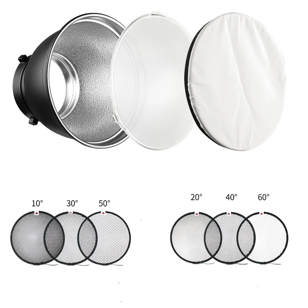 7-дюймовое крепление Bowens, стандартный отражатель, диффузор, лампа, тень + сотовая сетка для фотостудии, стробоскосветильник
