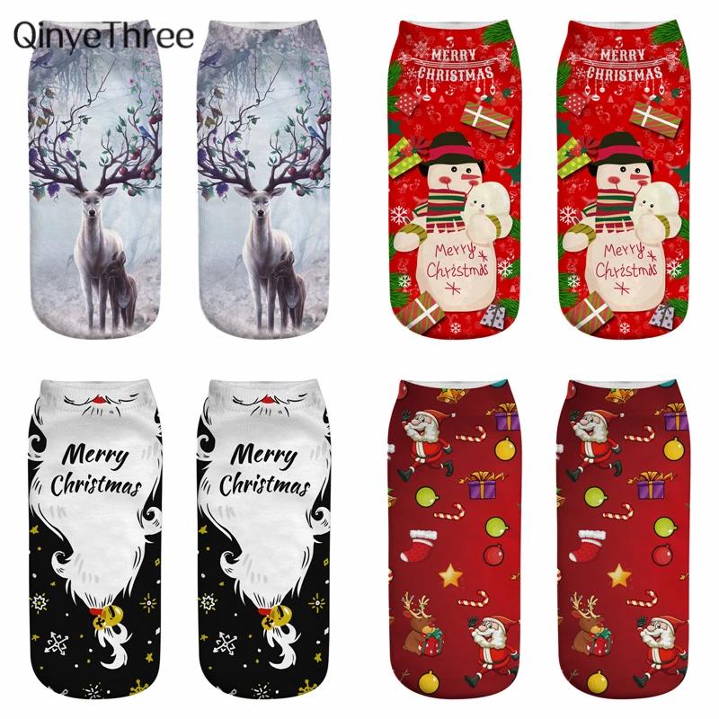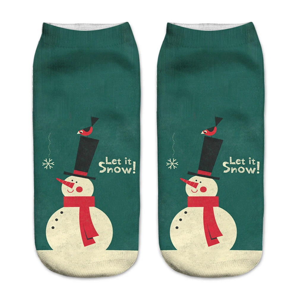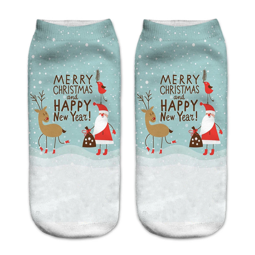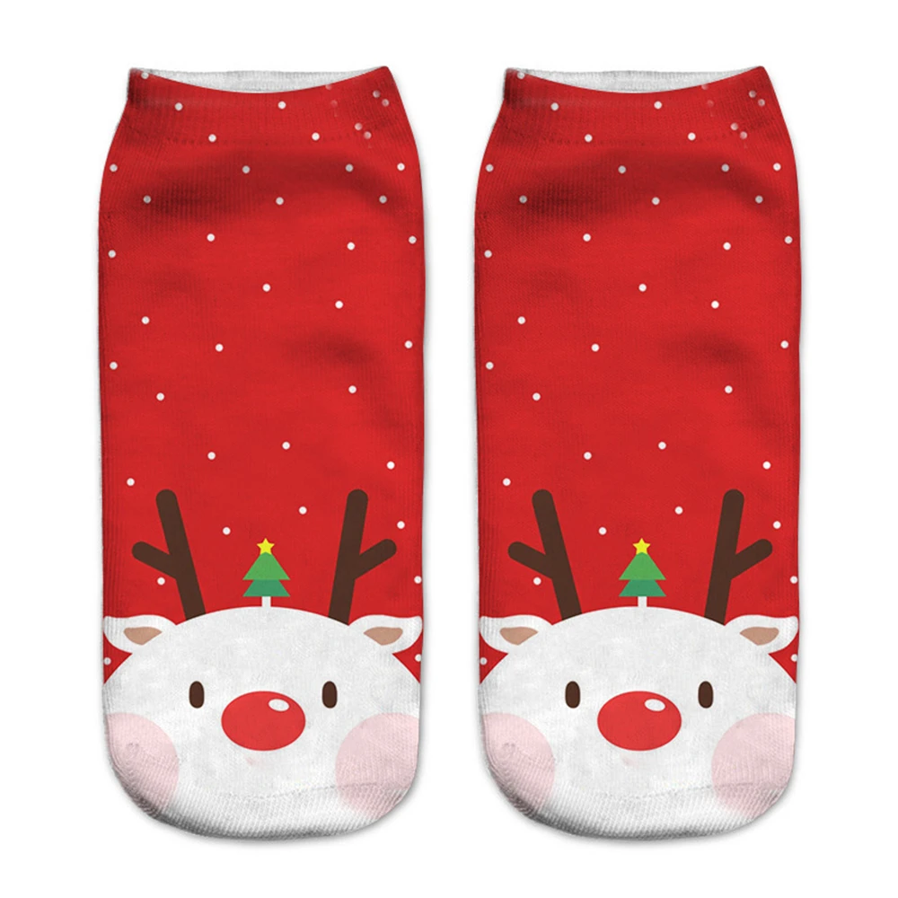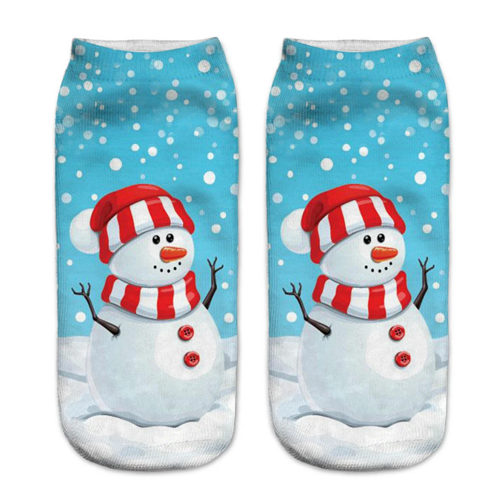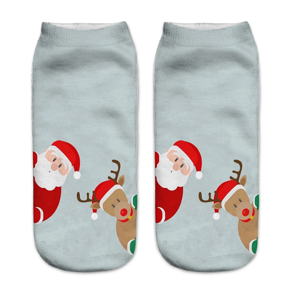 Новые рождественские носки с 3D принтом, забавные мужские Мультяшные носки с лосем, снеговиком, Санта, котом, унисекс, котенок, Короткие рождественские Семейные носки