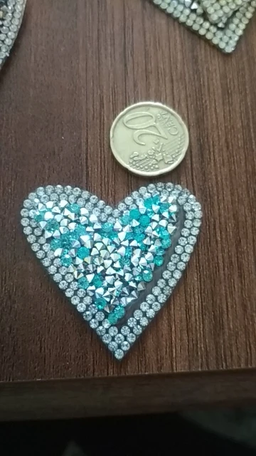 Сердечко славное. Камешки на месте. Не приклеивайте на тонкую ткань, утяжеляет вещь. На сумочку или куда-то еще.