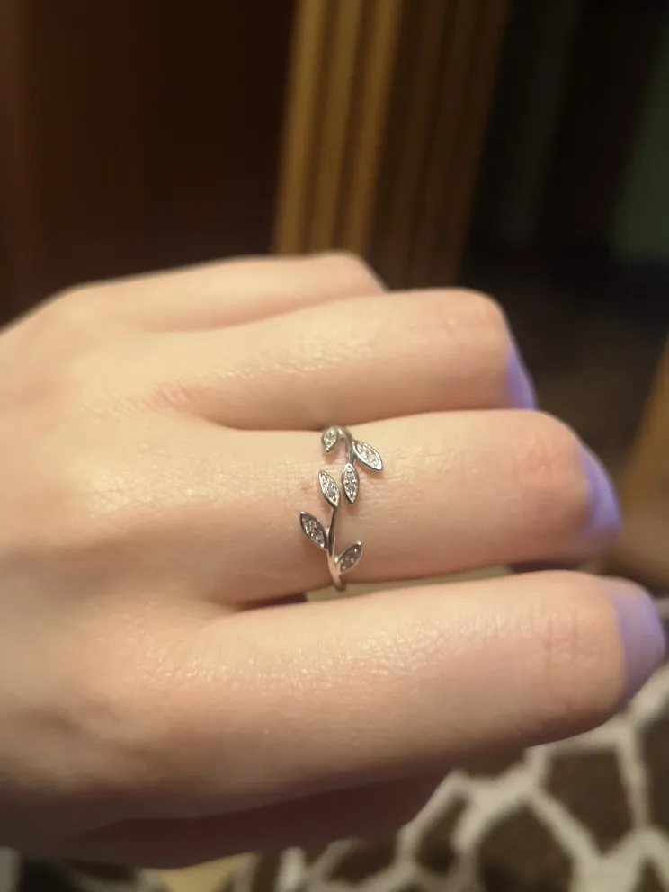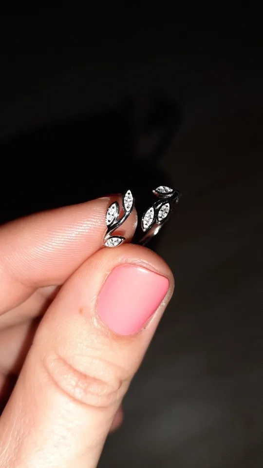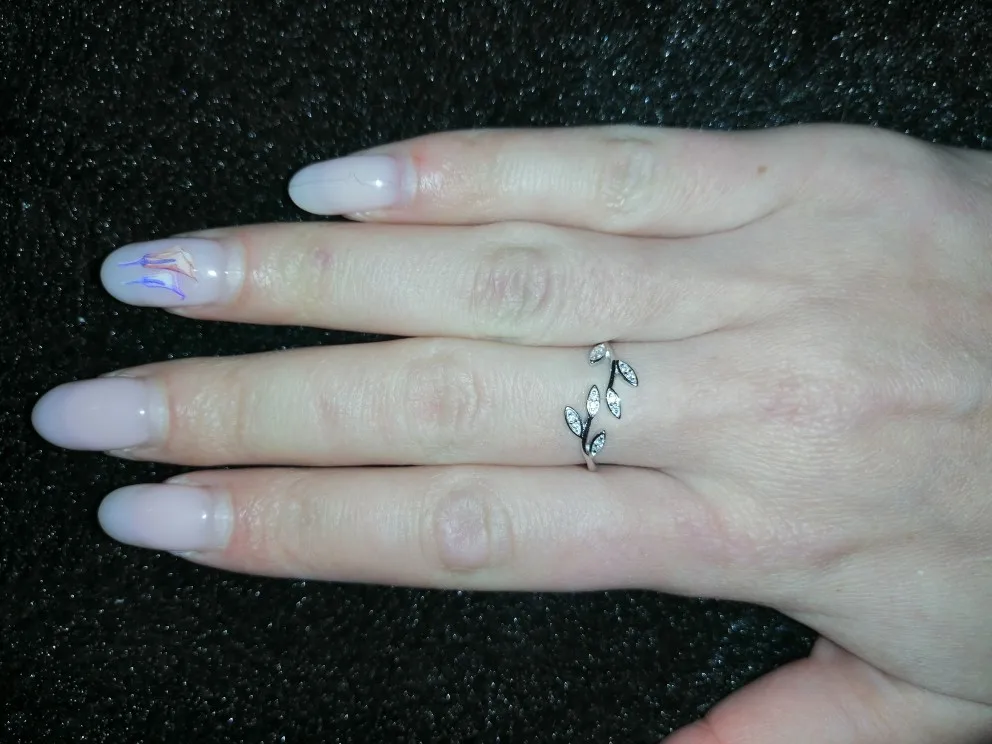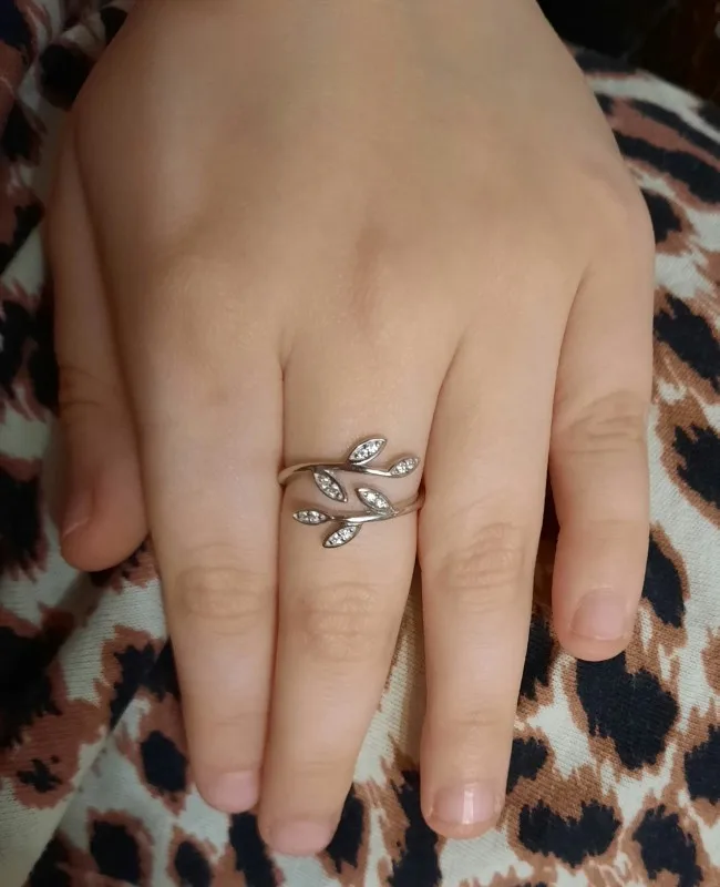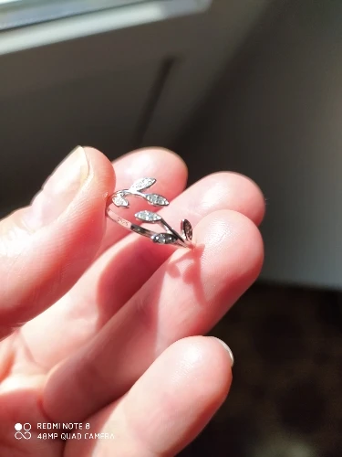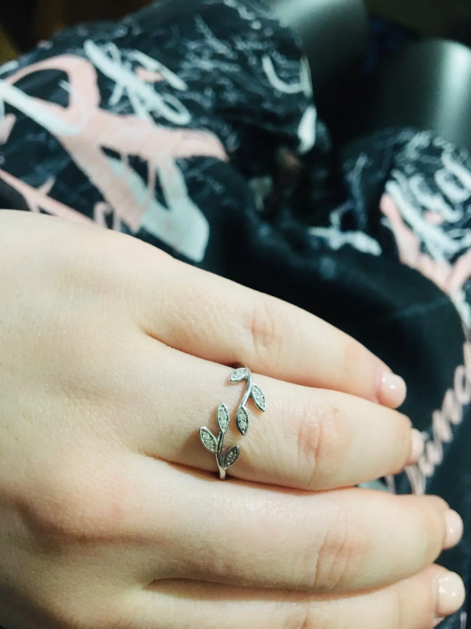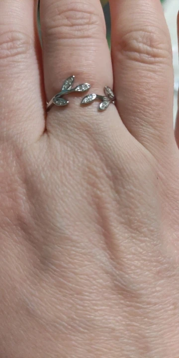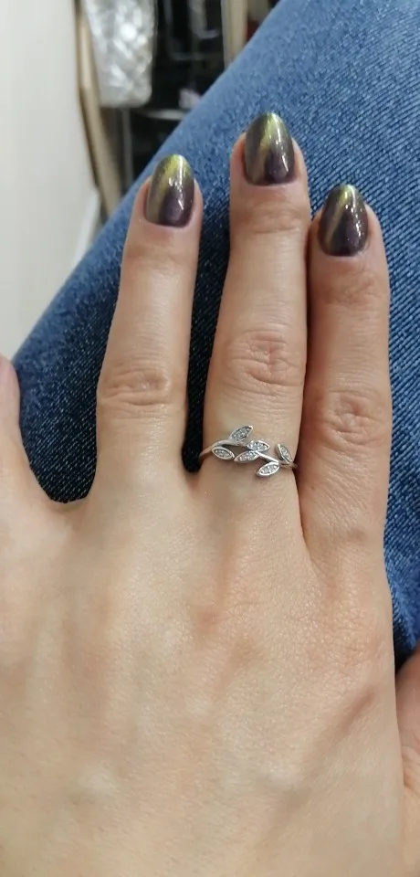 Получила своё кольцо из серебра 925 пробы с кубическим цирконием. Очень изящные листочки оливы. Оно тоненькое, без размера, но подойдёт на наш 17, 18 размер. Это будет 8 размер, не больше. Мне нравится, проба925 серебра стоит. Спасибо большое продавцу за быструю доставку. Рекомендую вам всем.