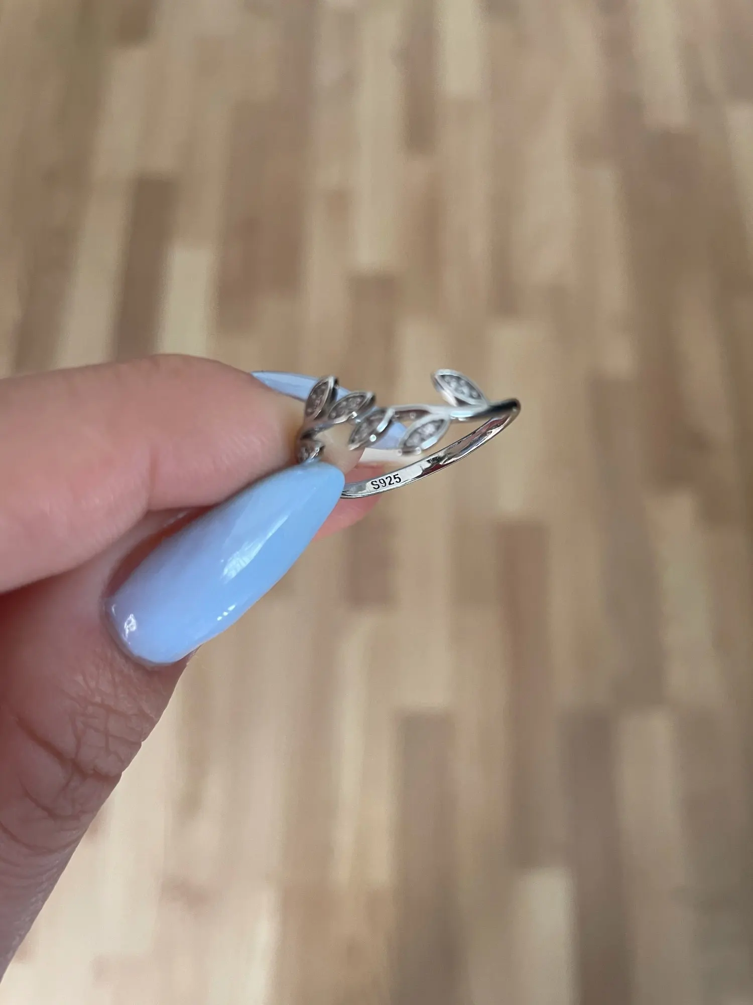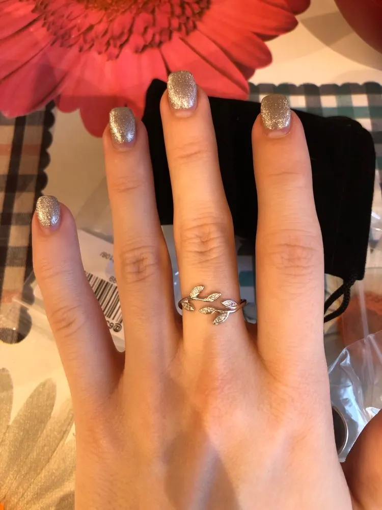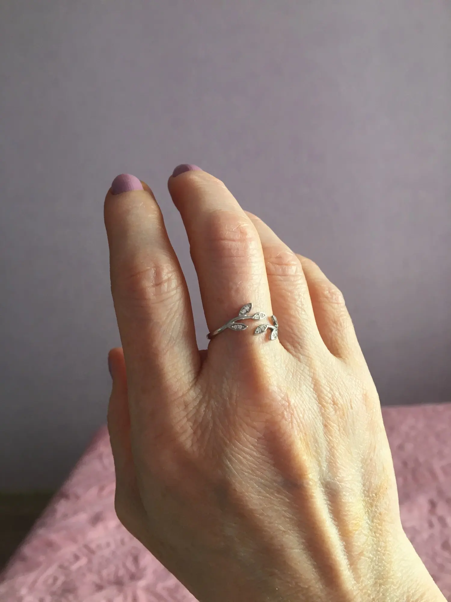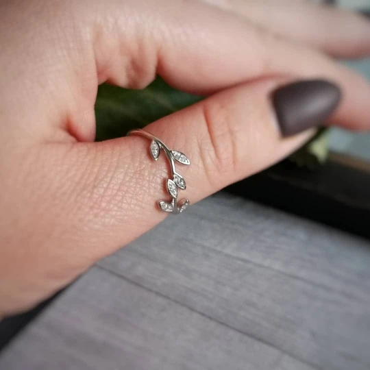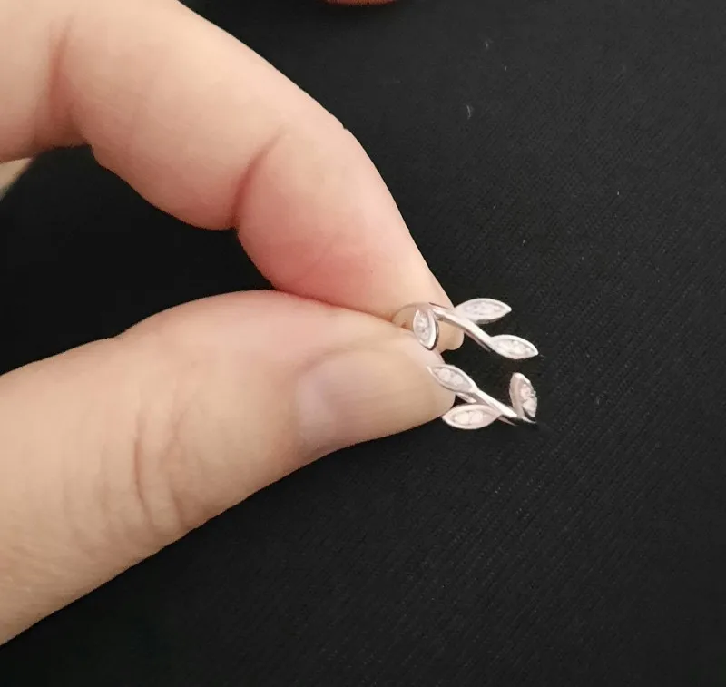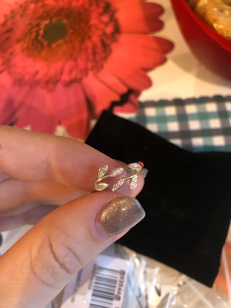 Получила своё кольцо из серебра 925 пробы с кубическим цирконием. Очень изящные листочки оливы. Оно тоненькое, без размера, но подойдёт на наш 17, 18 размер. Это будет 8 размер, не больше. Мне нравится, проба925 серебра стоит. Спасибо большое продавцу за быструю доставку. Рекомендую вам всем.