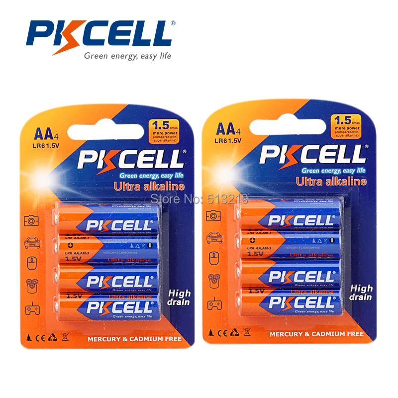 Аккумуляторы PKCELL AA, 1,5 в, LR6, AM3, E91, MN1500, сухие щелочны...