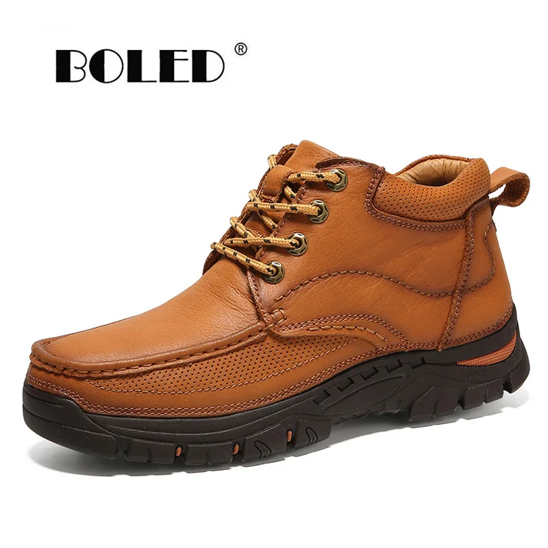 Мужские ботинки из натуральной коровьей кожи; Теплая водонепроницаемая зимняя обувь на шнуровке; Зимние ботильоны в стиле ретро; Мужская обувь; Прямая поставка