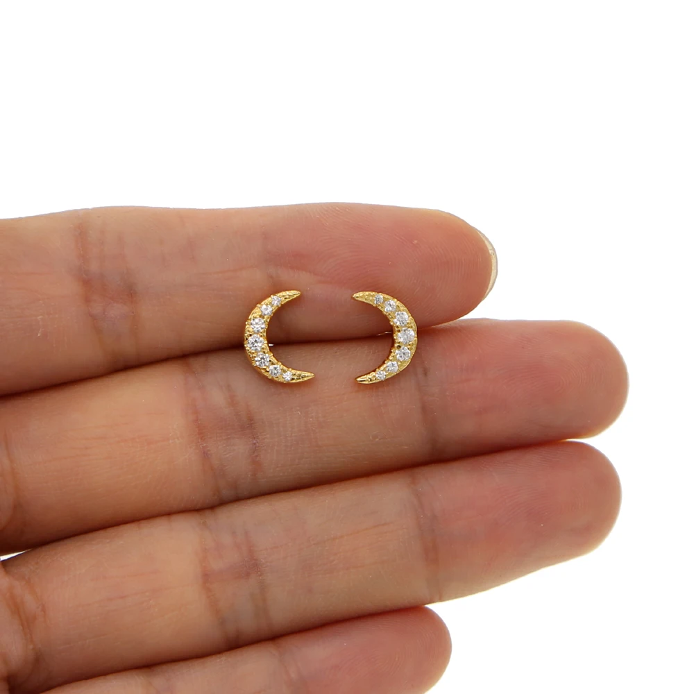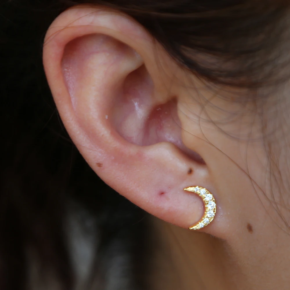 2018 крошечная серьга в форме Луны из кубического циркония, Рождественская Луна для рождественского подарка, мульти пирсинг, вторая Шпилька, элегантная, минимальная, серебряная, в форме Луны, в форме полумесяца, для подарка на Рождество