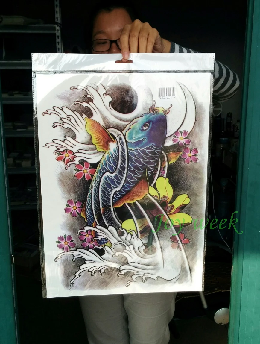 Водостойкая Временная тату-наклейка, лотос и карпы, Мужская тату на всю спину, большие тату-наклейки, флэш-тату, искусственная татуировка для женщин 19