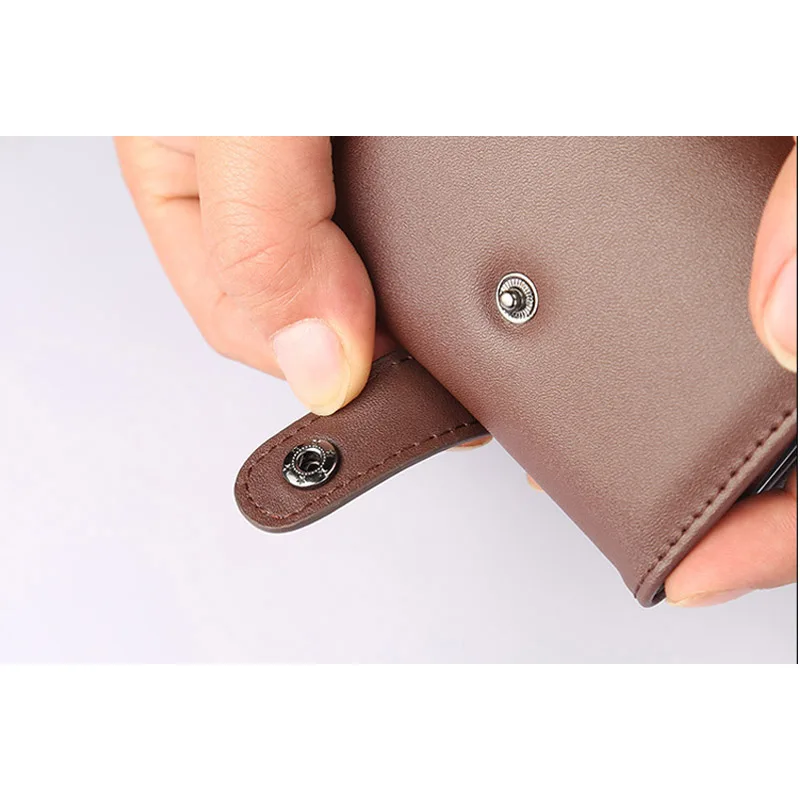Мужской держатель для кредитных карт из искусственной кожи, защитный кошелек, выдвижной блокирующий чехол для денег, алюминиевый автоматический банковский чехол коричневого цвета
