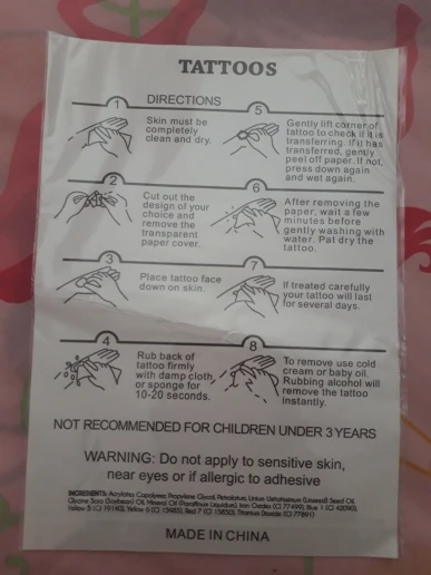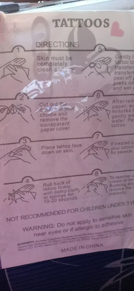 заказ шел больше двух месяцев, не отслеживался, думала уже не придет. сами тату соответствуют описанию .