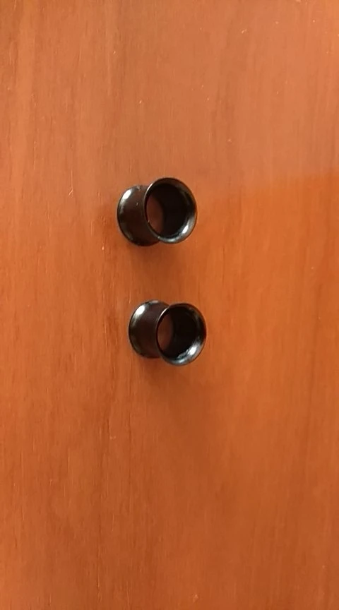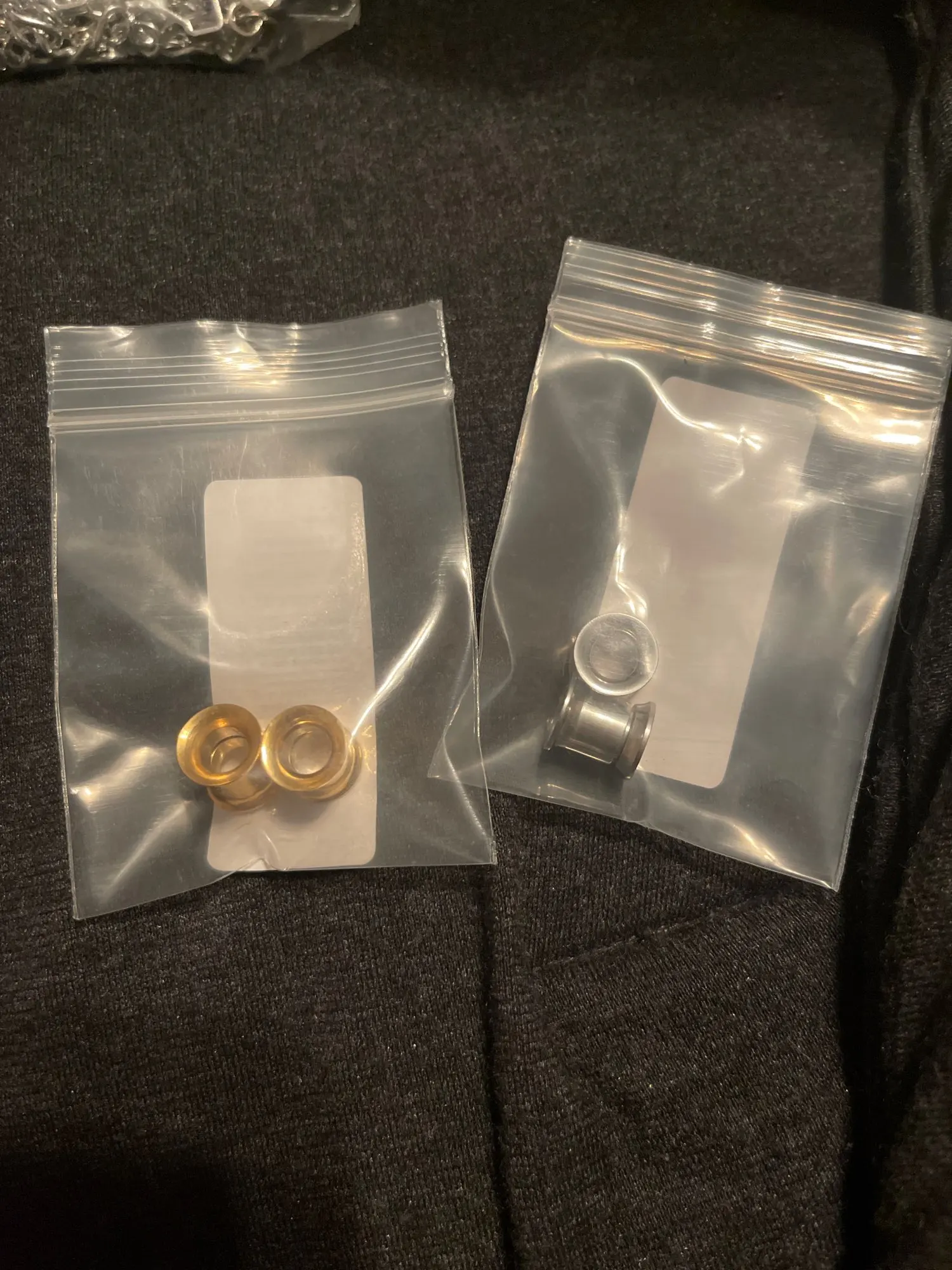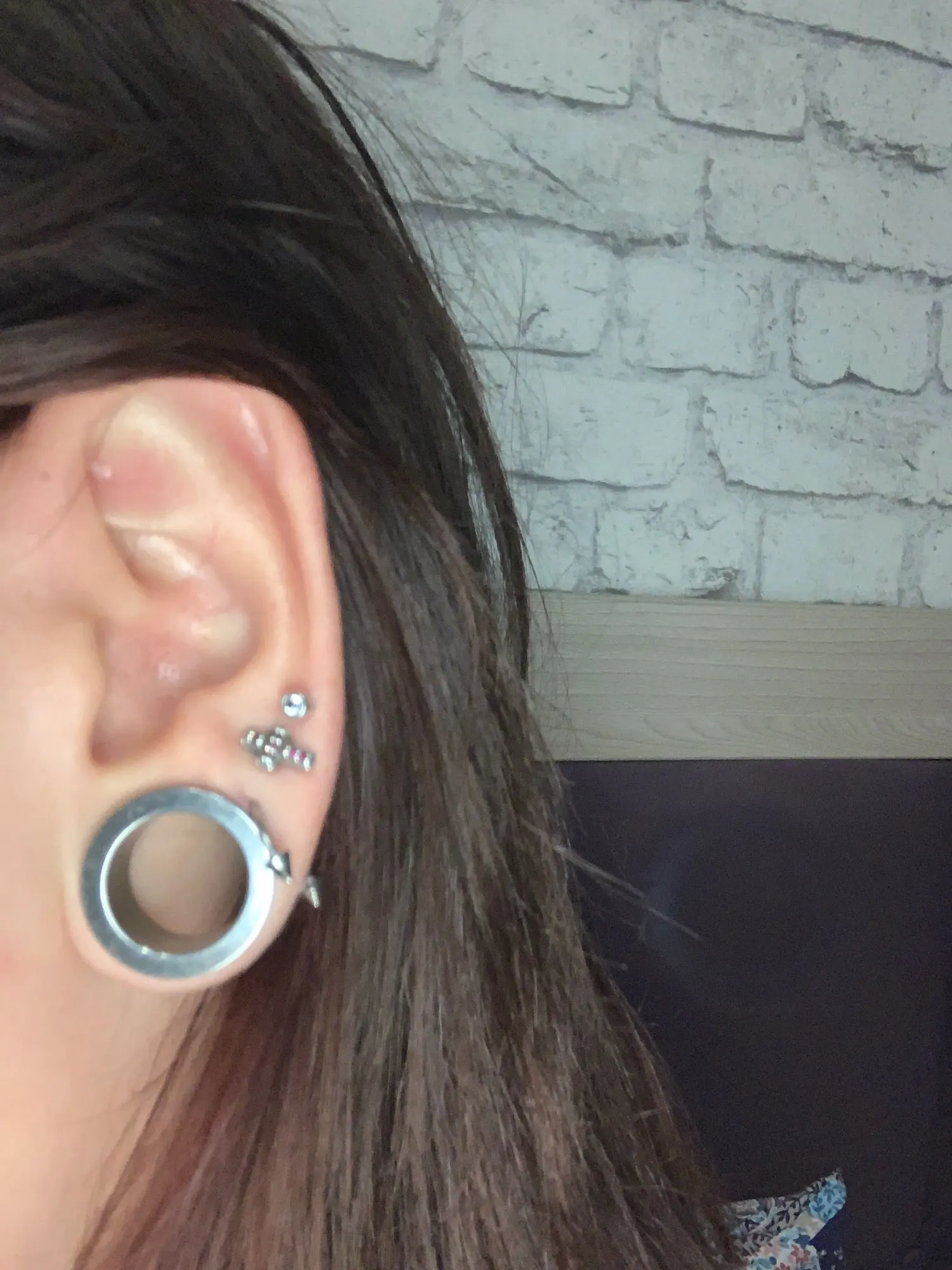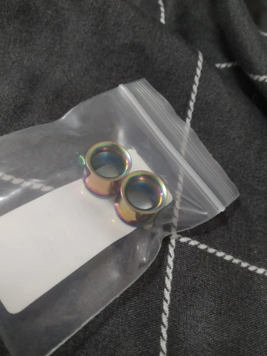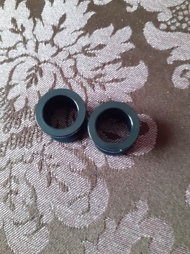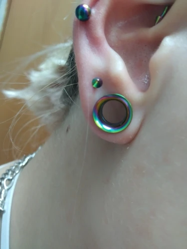 как на фото. немножко шире, чем мочки ушей, но в общем очень даже привлекательно и натурально смотрится. лучше, чем пластик. НЕ ОКИСЛЯЮТСЯ, что не мало важно