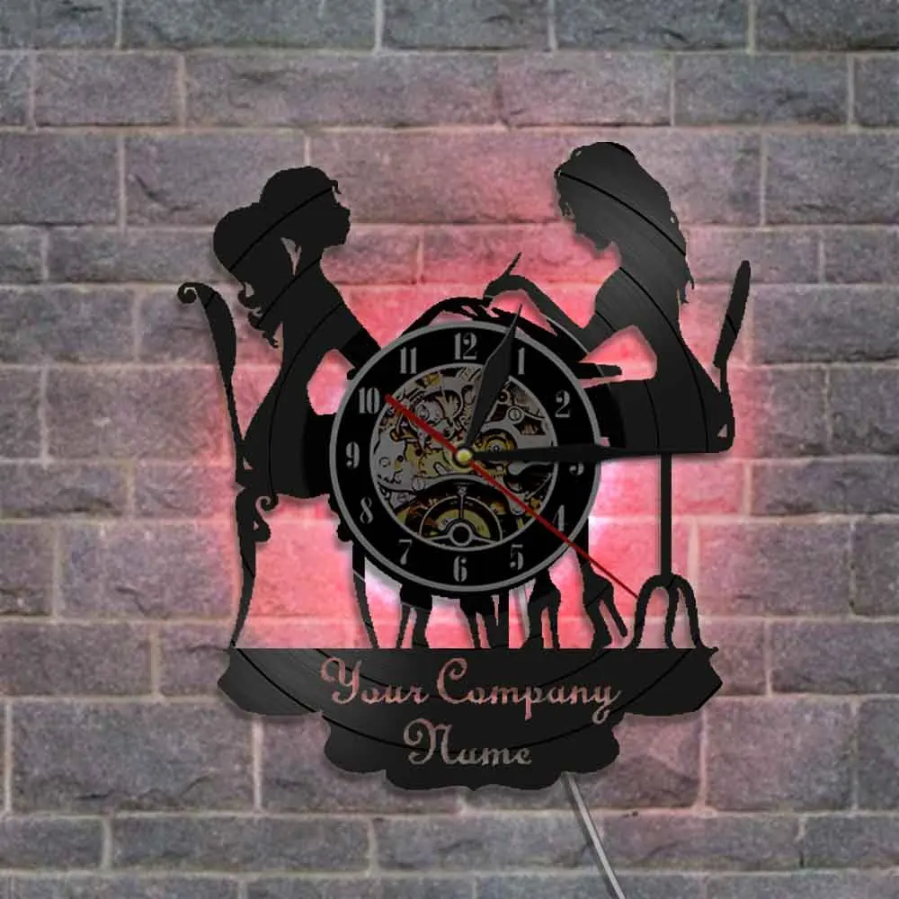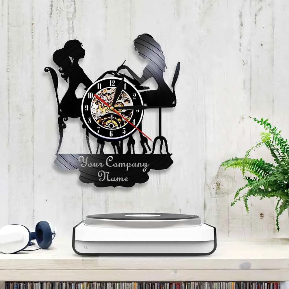 Пользовательские спа салон бизнес декоративные настенные часы маникюрный салон персонализированное ваше имя виниловая запись настенные часы польский Мода