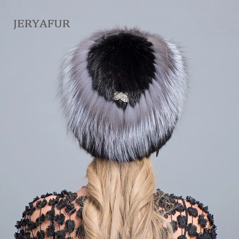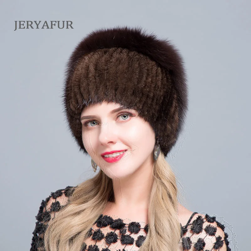 JERYAFURНовые модные зимние шляпы для женщин, шапка из натурального меха норки, Женская Лоскутная шапка из лисьего меха, разные цвета, теплые вязаные шапки